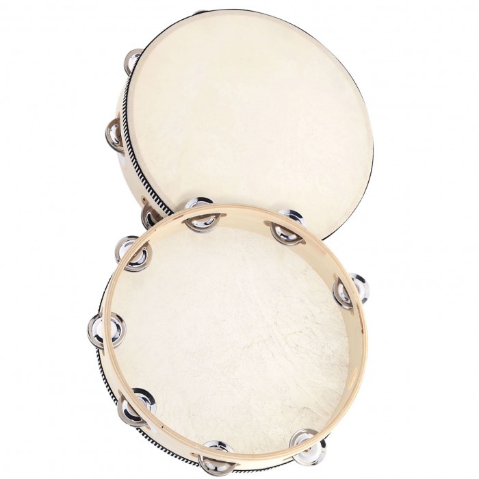 10" Hand Held Tambourine Drum Bell Birch Metal Jingles Percussion Musical Educational Instrument for KTV Party Kids Games
