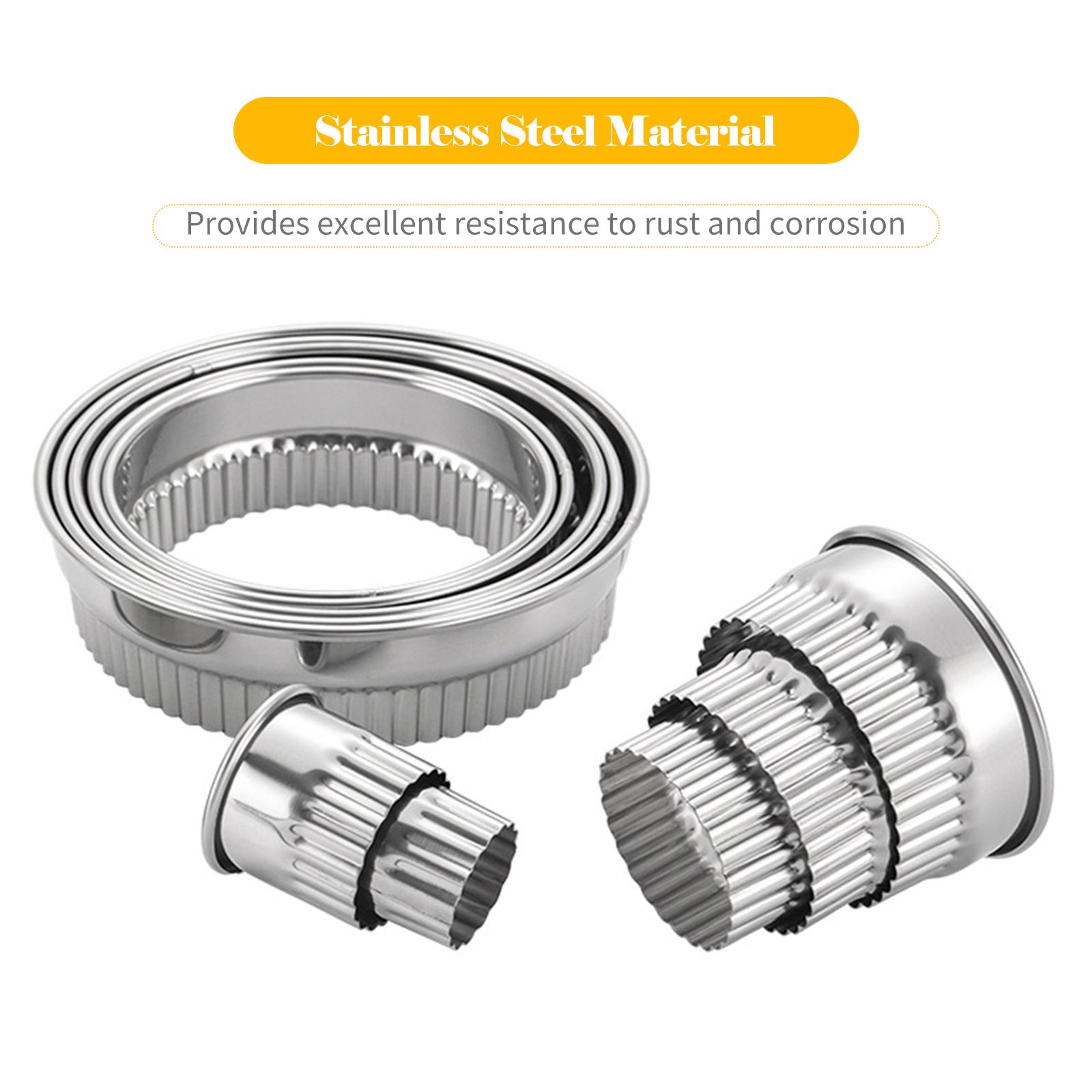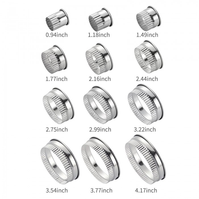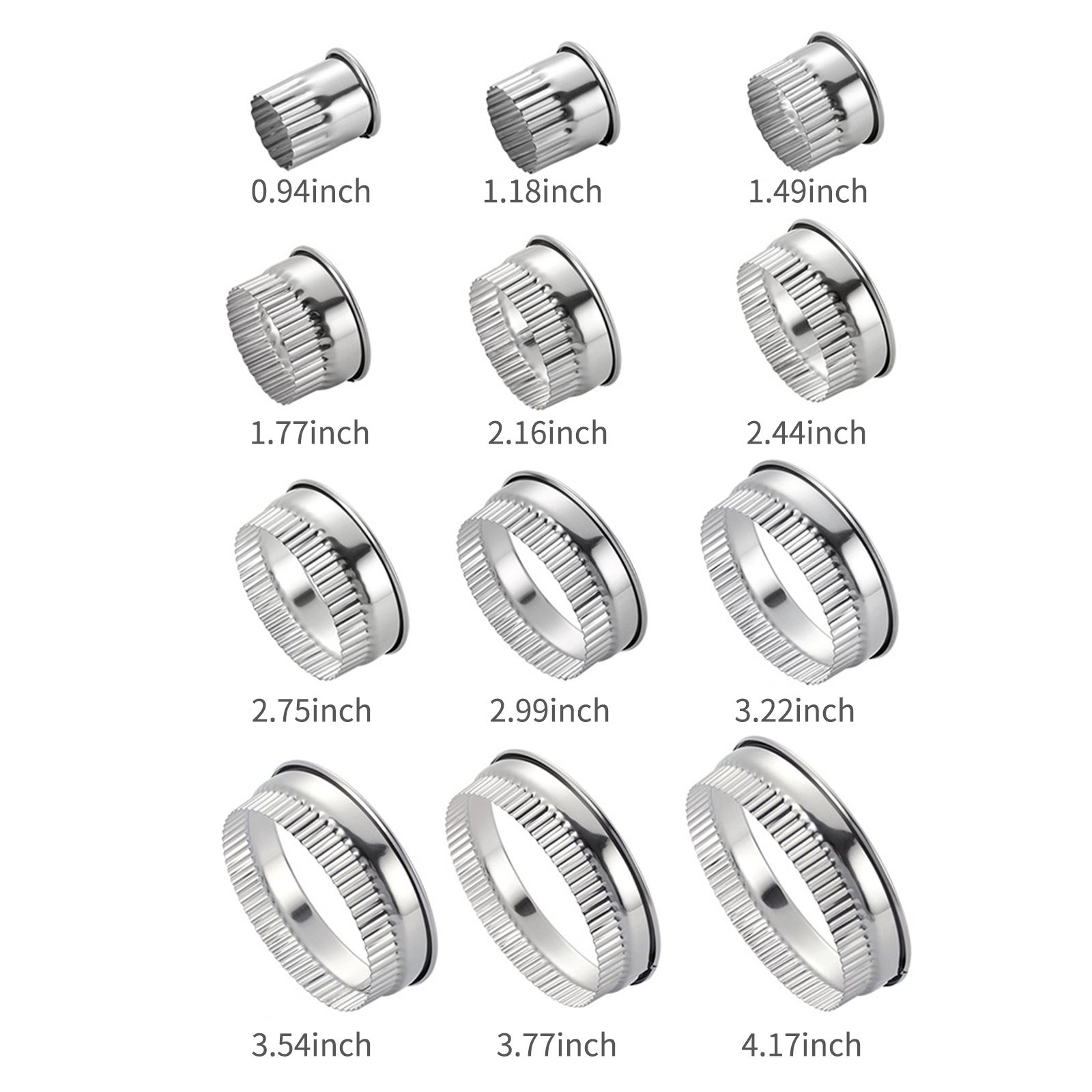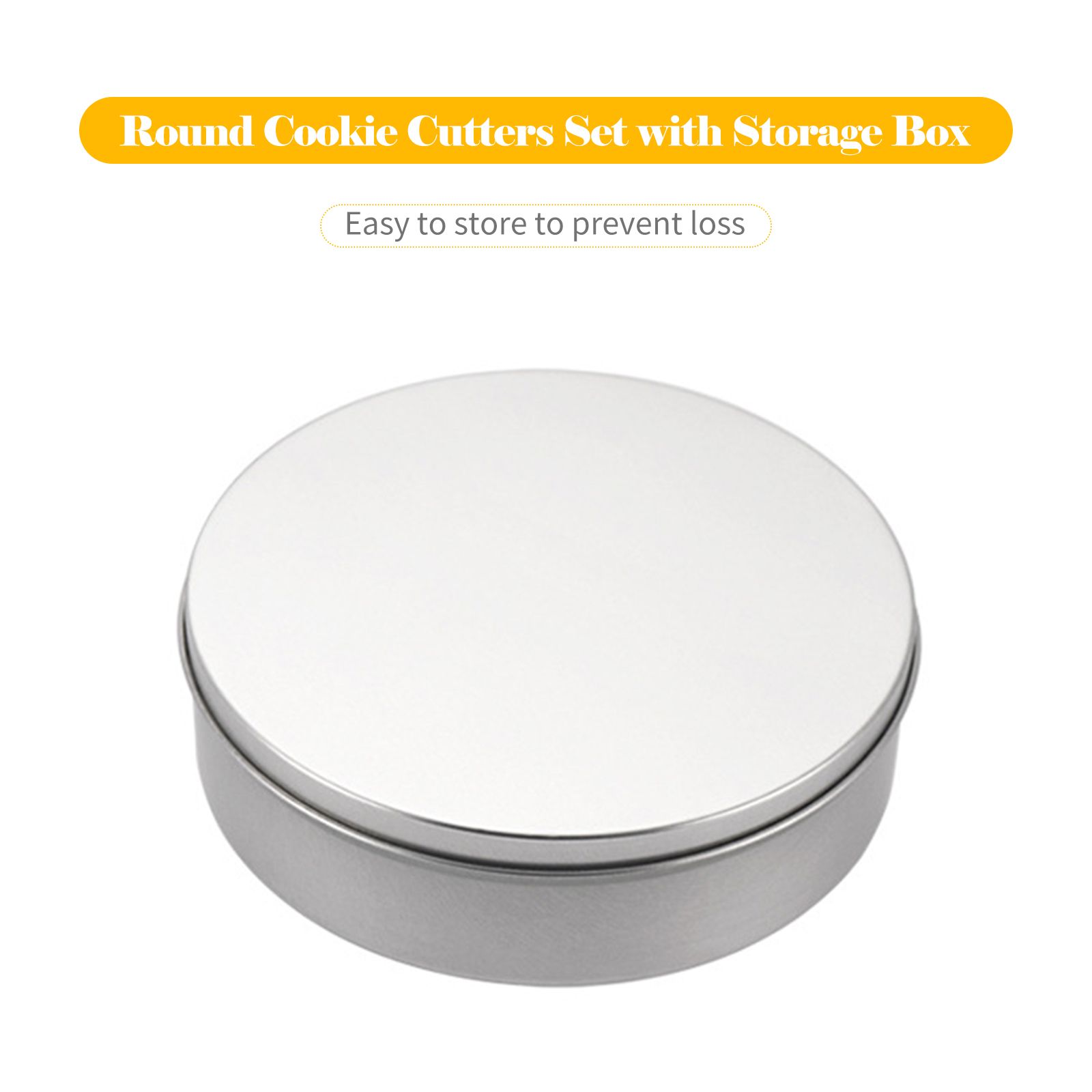 12PCS fluted round cookie cutters set with metal box storage, easy to use. These molds are great as a mousse mold, or for cutting cookie dough, fondant, soft fruits, bread, cake, cheese, etc, making your food and party more interesting.