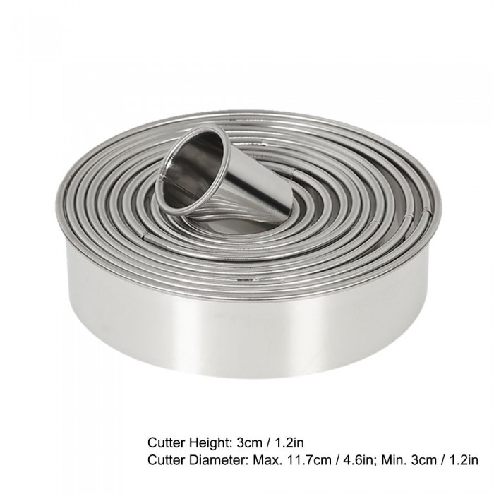 Set includes 12 circle cookie cutters of different diameters to meet your various cutting demands.