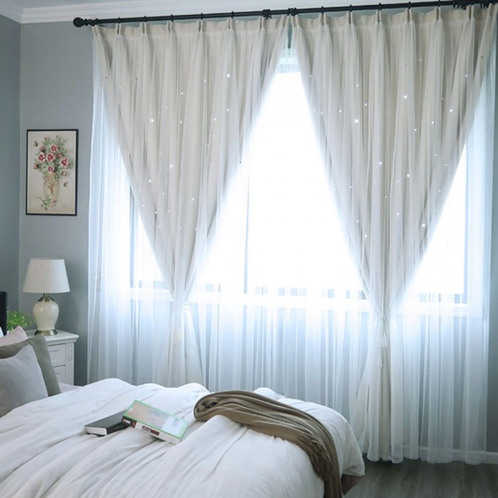 Hollowed out star shading window curtain is perfectly suitable for home/living room/bedroom. Easy to install it to window and use.