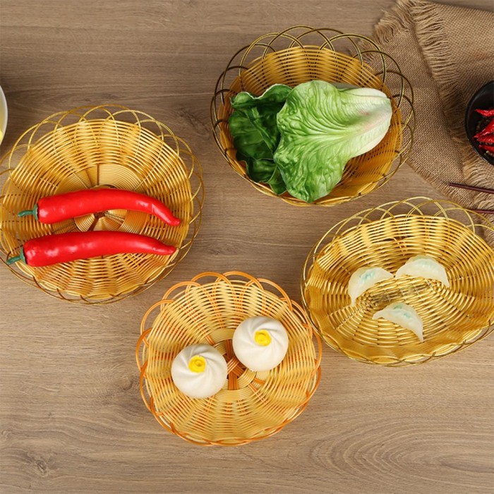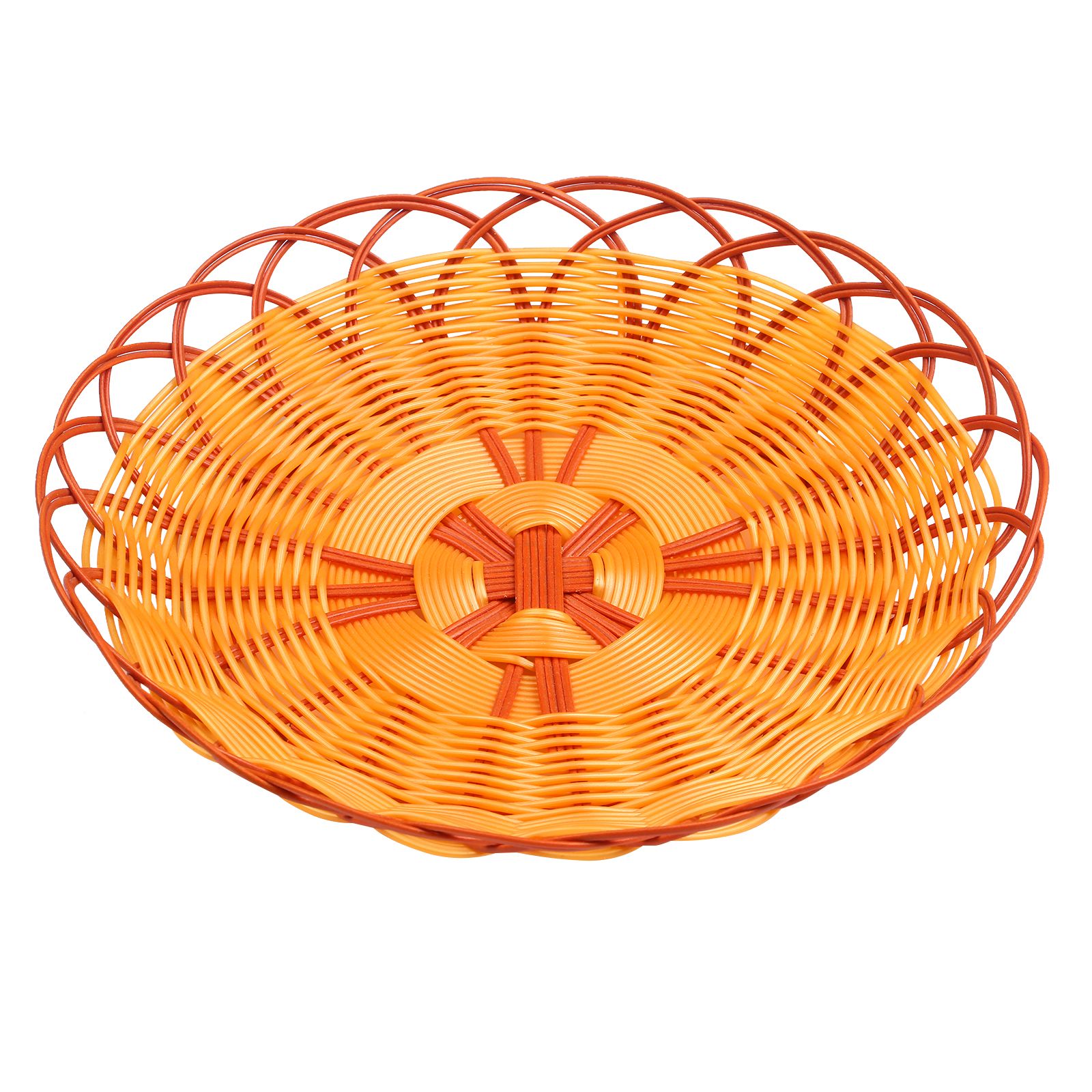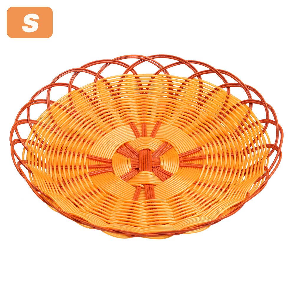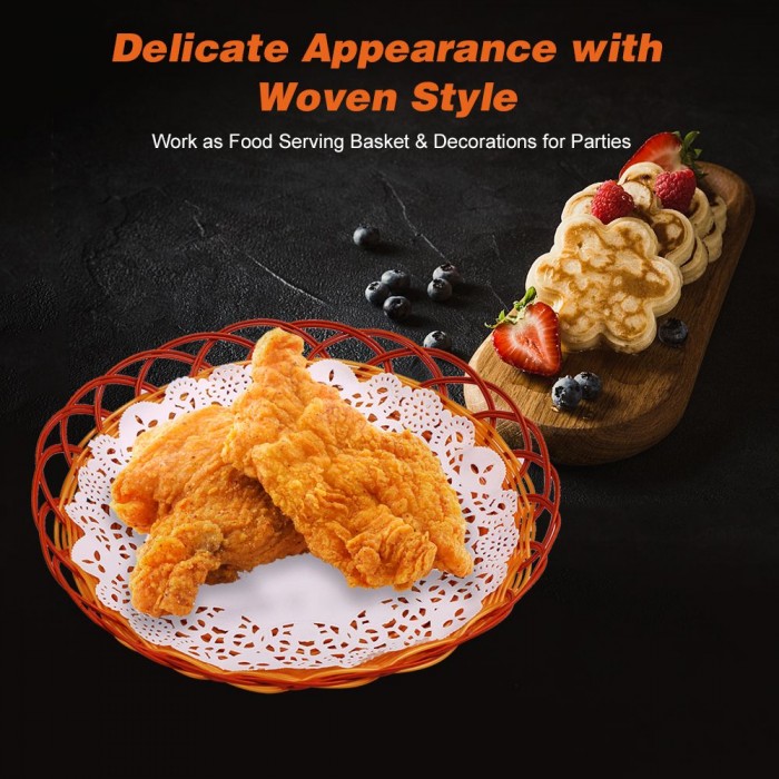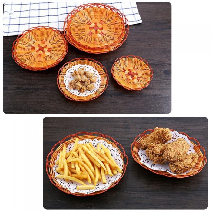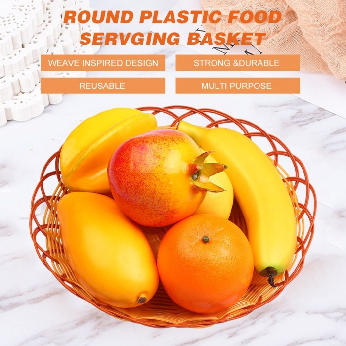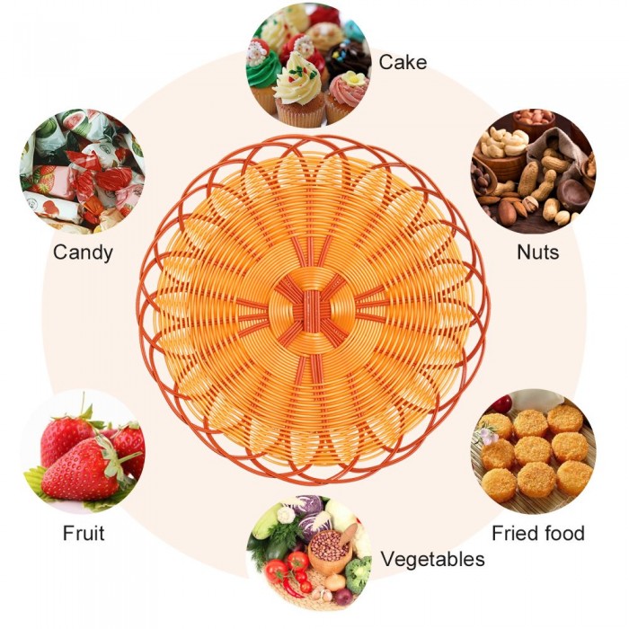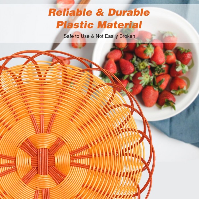 This round plastic basket features exquisite appearance, durability and safety for use. You can use it to store bread, fruit and more, making your kitchen or living room table look neat and beautiful; you are able to use it for showcasing and serving biscuits, snacks, desserts such food, too.
