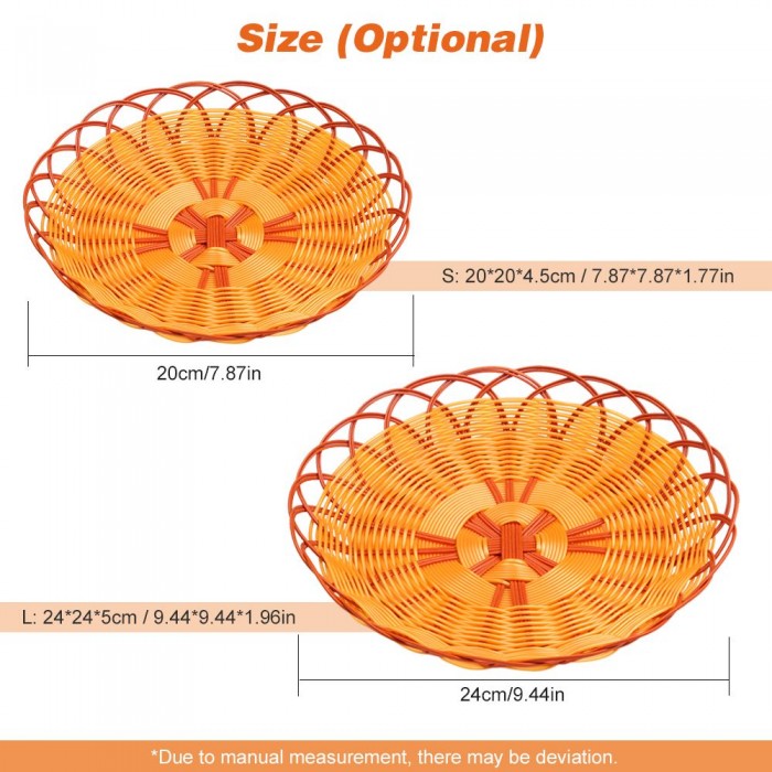 About Bread Basket: The lightweight plastic basket has different sizes(L and S) for you to choose. 24*24*5cm for L, 20*20*4.5cm for S.