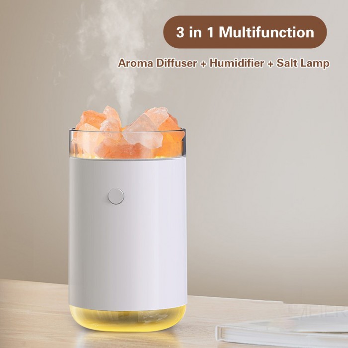 3 in 1 aroma diffuser humidifier with salt lamp, suitable for bedroom, desk, bedside, office, car, effectively moisturize dry skin, creating comfortable fres.h air to you.