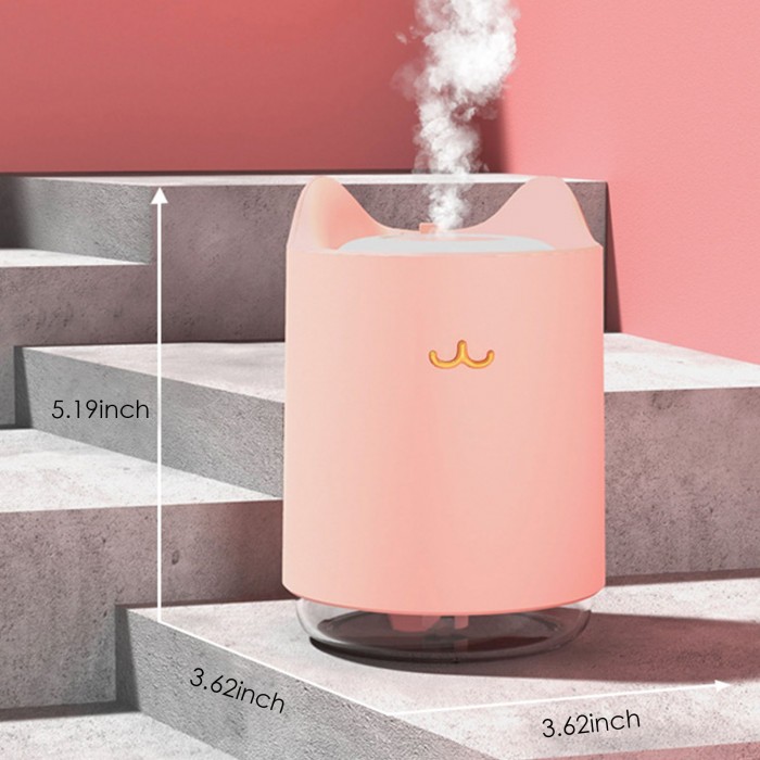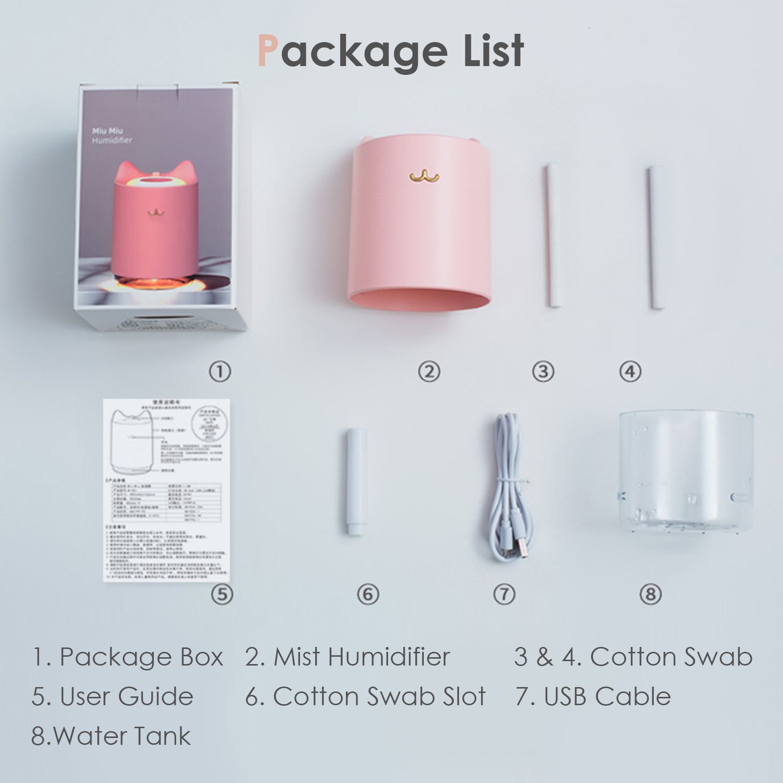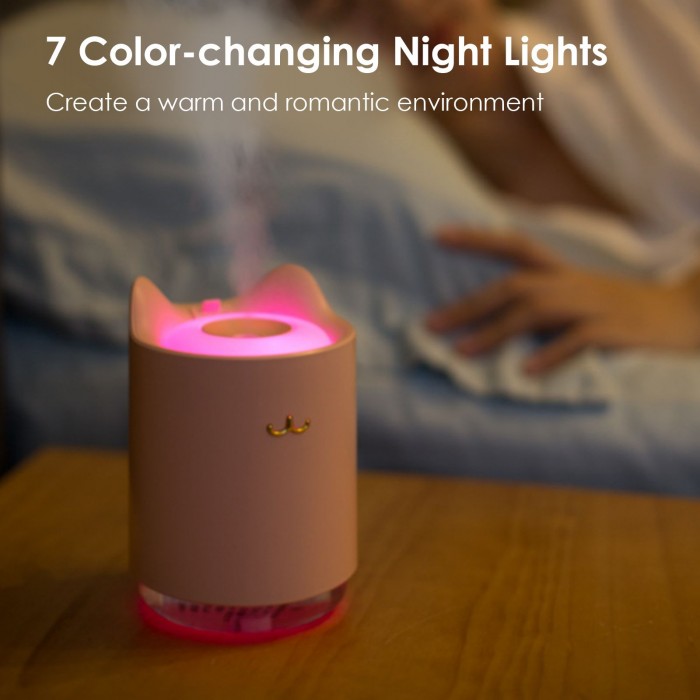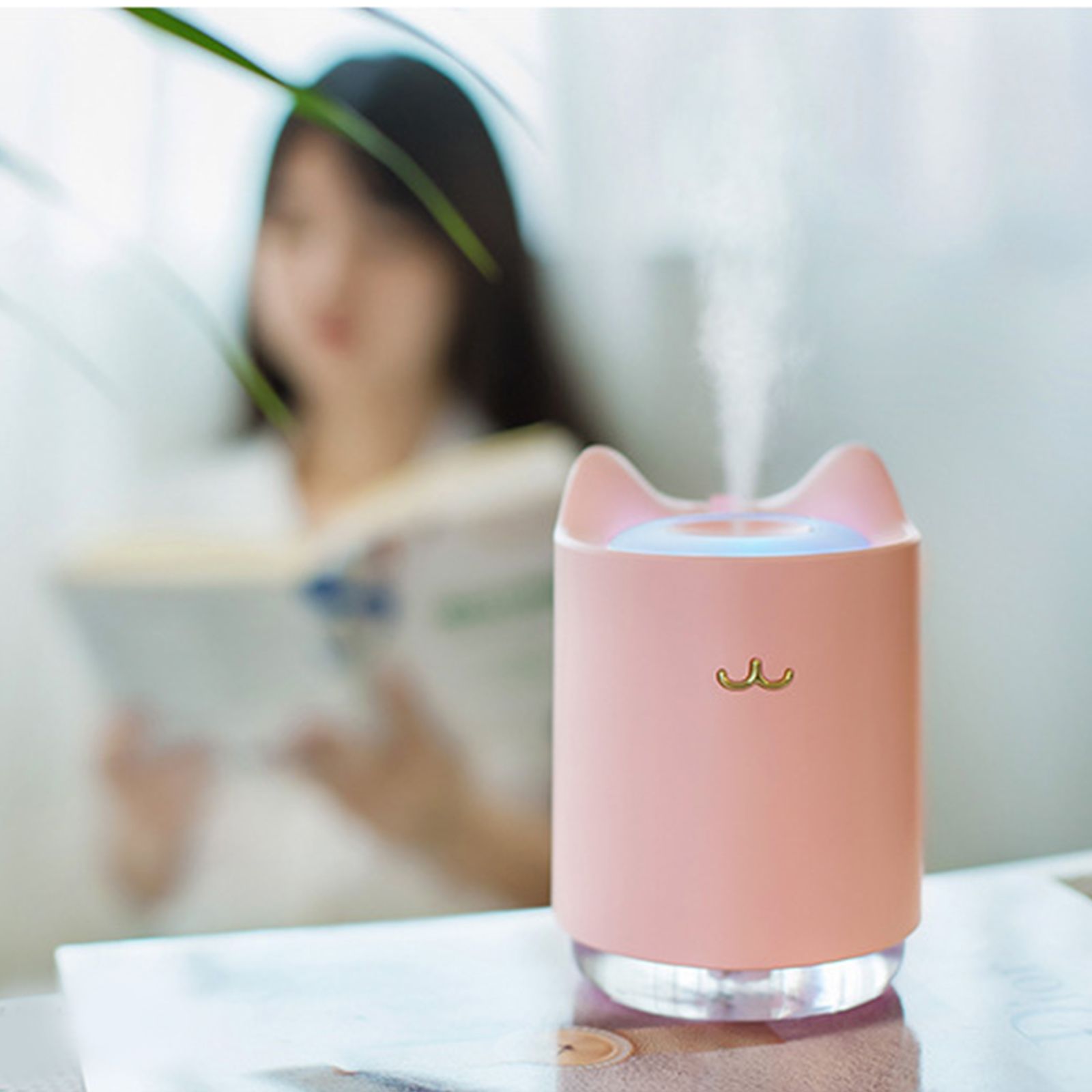 The colorful mist humidifier adapts nano-spray technology to ensure fine spray mist and no water droplet will be left on your desk. It not only helps adjust dry air in the air-conditioned room but also moisturizes your skin, relieves nasal congestion, and purifies the air, keeps you healthy all the time.