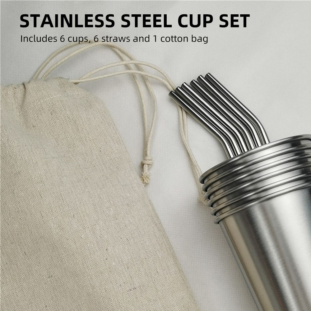 This set includes 6 500ml stainless cups and 6 stainless cups straws, which are made of stainless steel. This cup is suitable for holding a variety of beverages and can be stacked for easy portability. Not only suitable for use at home, but also for outdoor camping.
