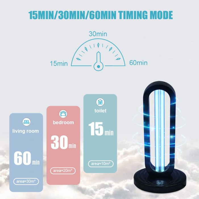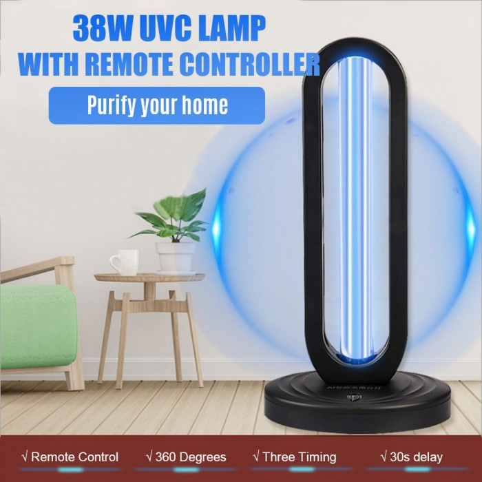 38W UVC LED Lamp with Remote Controller 360 Degrees Three Timing for Purify Hotel Household Home Office Living Room