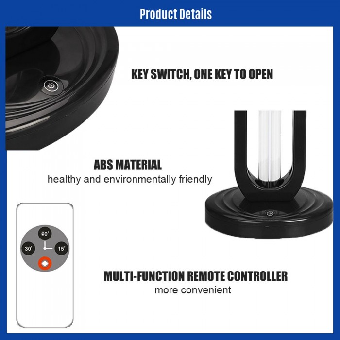 This UVC lamp is mainly made of ABS material, healthy and environmentally friendly, the quartz glass tube is double tube focusing design, 360 ° luminous angle. The UVC lamp can remove formaldehyde and odor effectively, which can give you a safe and clean room for your family.