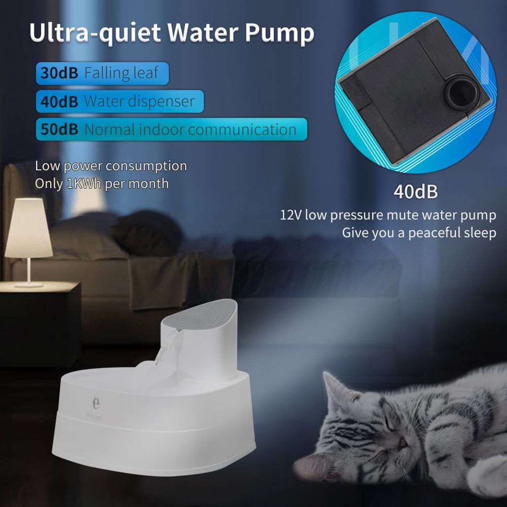 Quiet & Low Power Work: Equipped with a low-power pump, ultra-quiet, and with low power consumption, never disturb you or your pet sleeping. The pump normally lasts between 2.5-4 years.