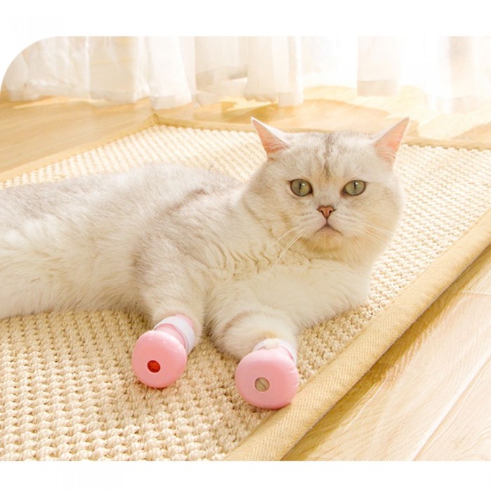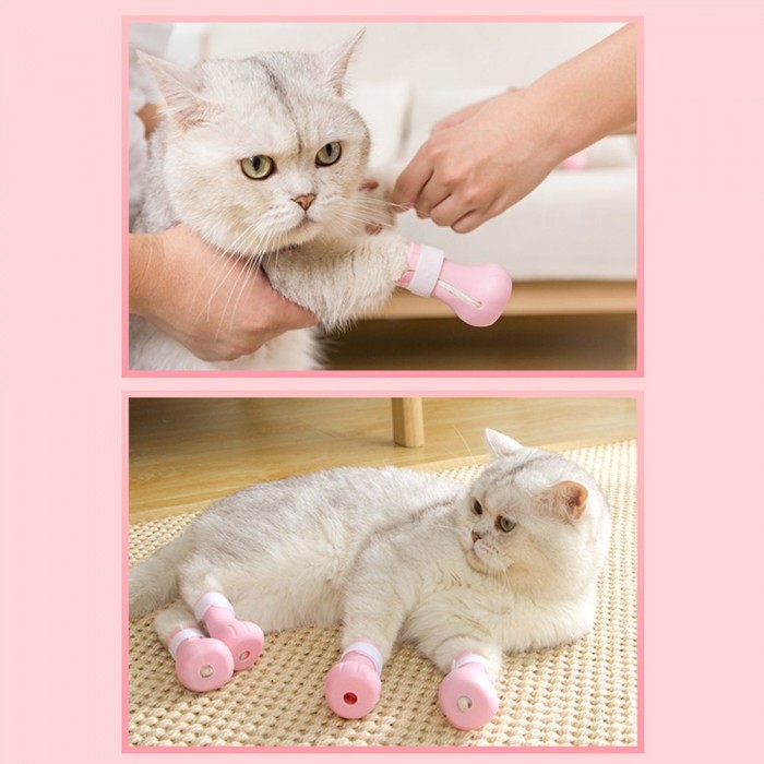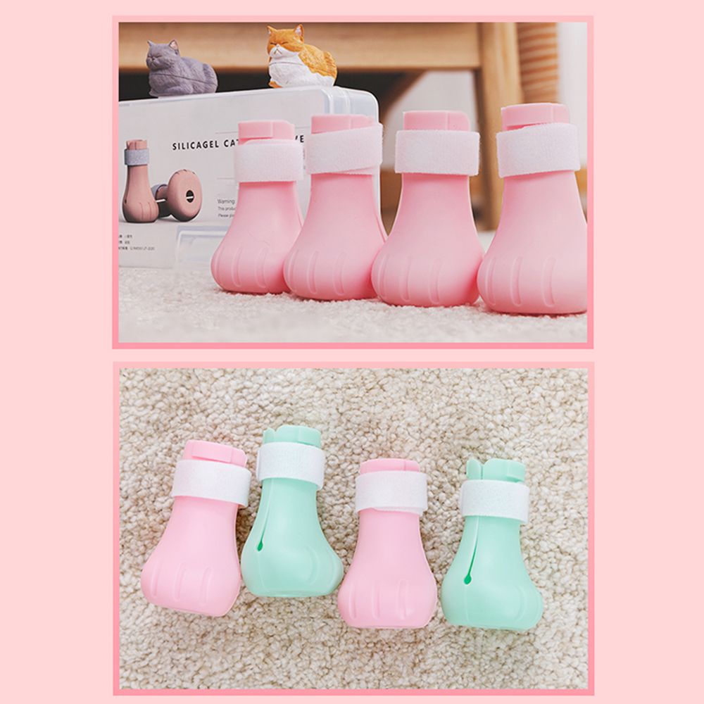 4pcs Anti-scratch Cats Foot Shoes Boots Silicone Pet Grooming Scratching Restraint Booties Kittens Cats Claws Cover Protector for Home Bathing Shaving Checking Treatments
