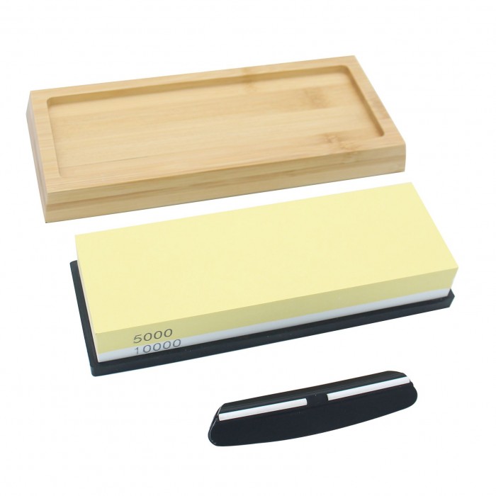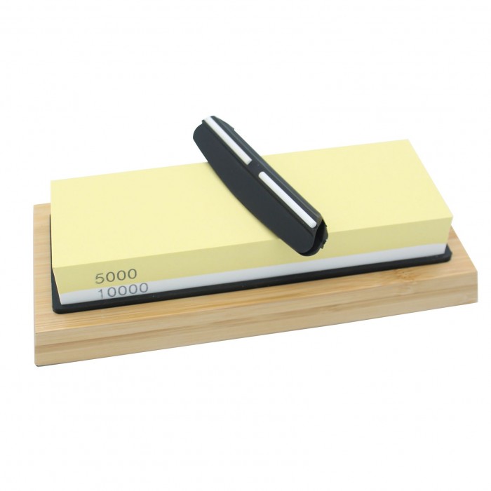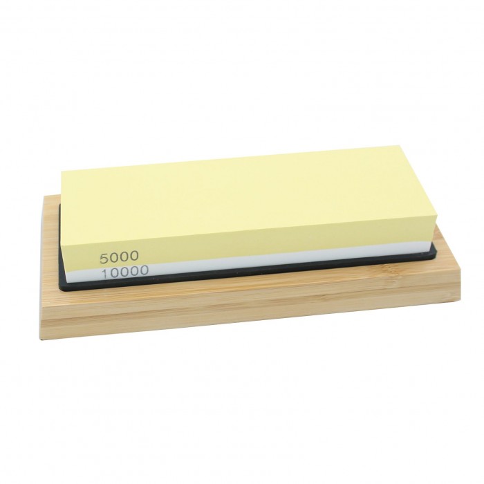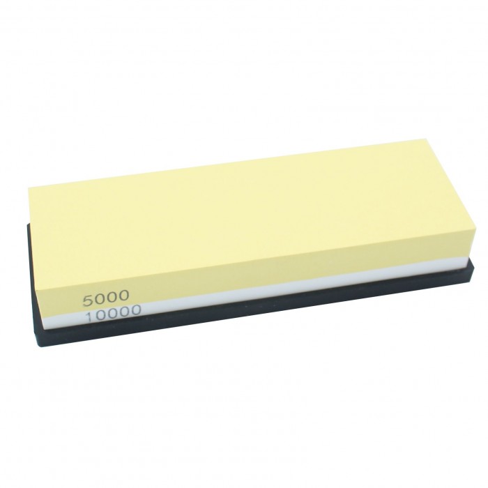 Double-sided whetstone, 5000 grit for sharpening blade, 10000 grit for honing the blade.