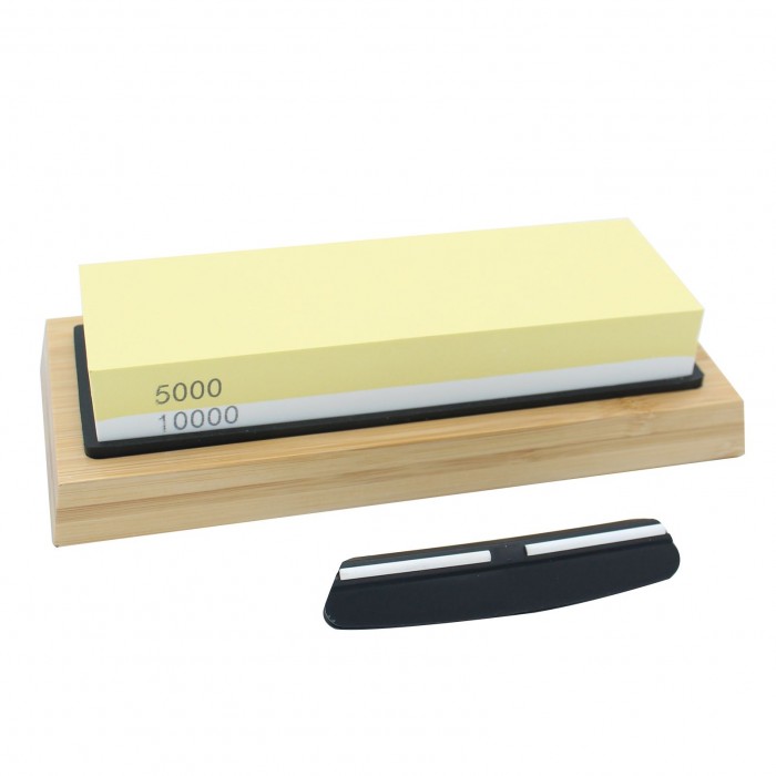 5000/10000 Grit White Corundum Double-sided Whetstone with Bamboo Base Angel Guide for Cutter Sharpening
