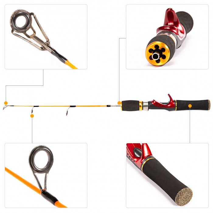 52cm 2-Piece Ice Fishing Casting Rod Lightweight Portable Glass Fiber Ice Fishing Rod Pole