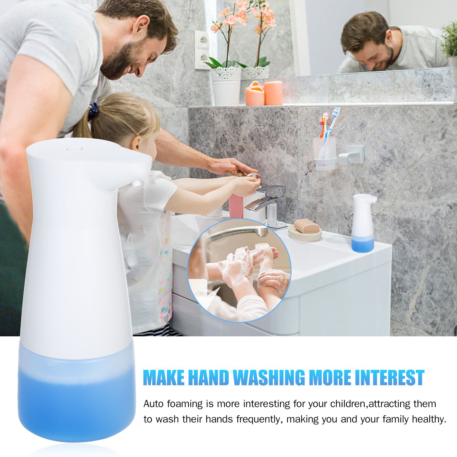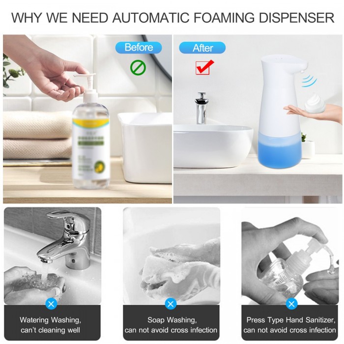 Hand Free Operation More Hygiene --- Different with traditional hand washing, automatic soap dispenser can effectively  antibacterial and prevent secondary pollution. Auto foaming is more interesting for your children, attracting them to wash their hands frequently, making you and your family healthy.