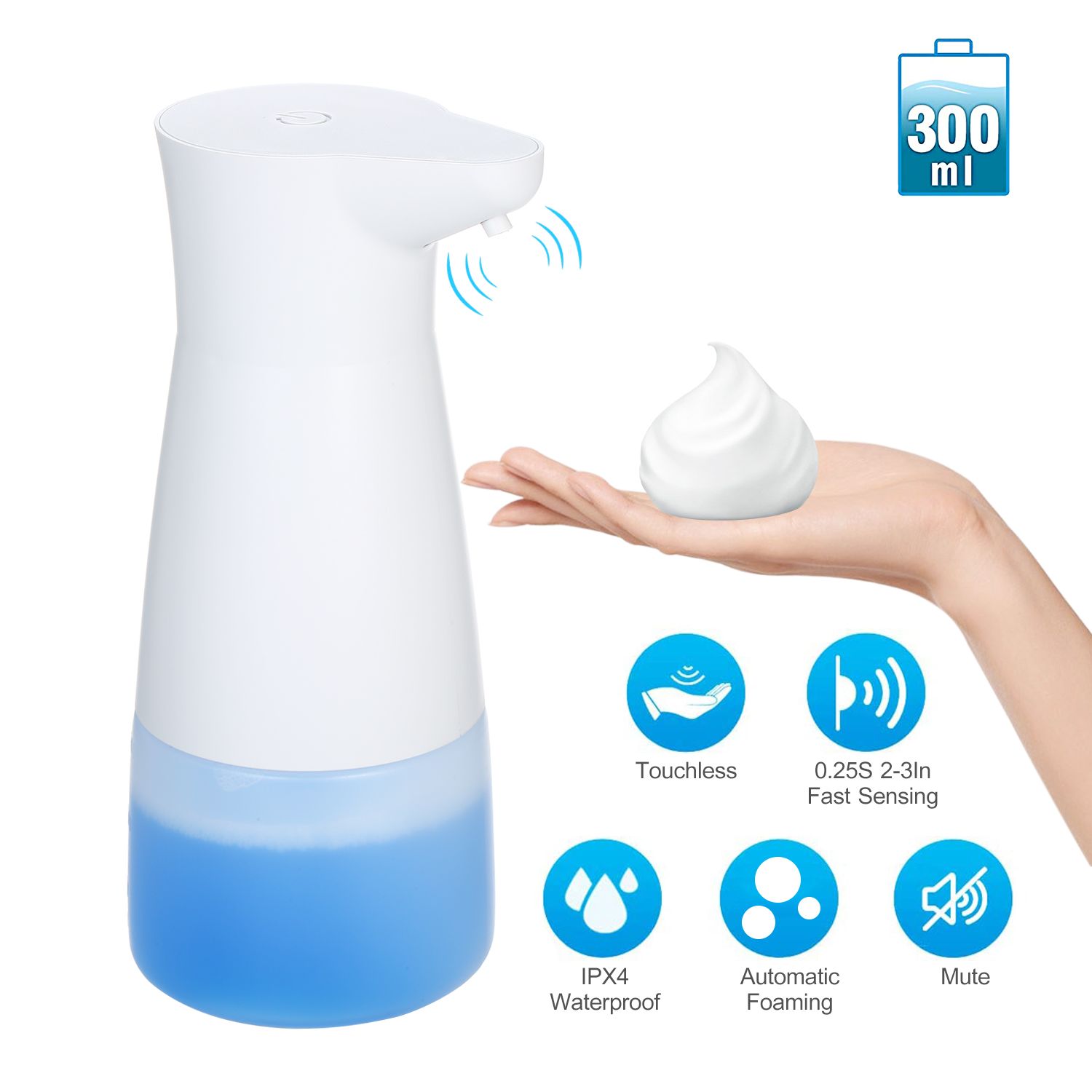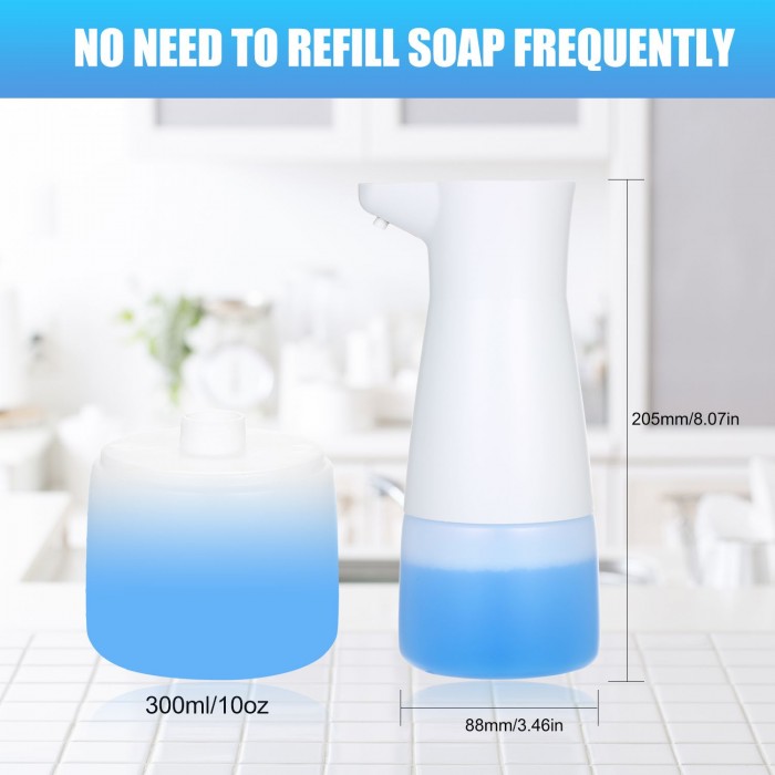 Automatic Touchless Foam Soap Dispenser 10oz/300ml IPX4 Waterproof Battery Operated Soap Dispenser with Infared Motion Senser for Bathroom Kitchen Toilet Office Hotel
