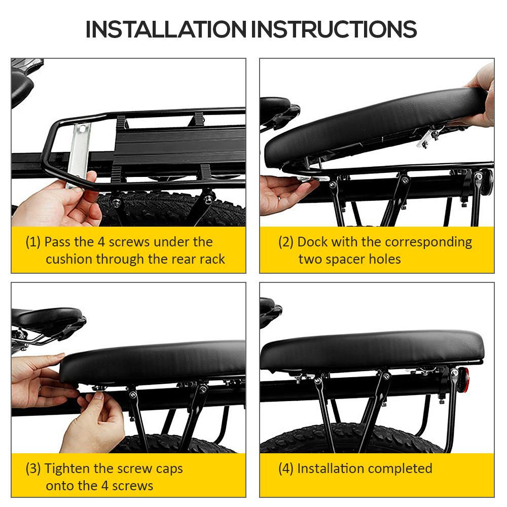 This bike rear seat is made with wear-resistant PU leather and thick foam padding to provide great comfort. It is easy to install on most bicycles with rear rack.