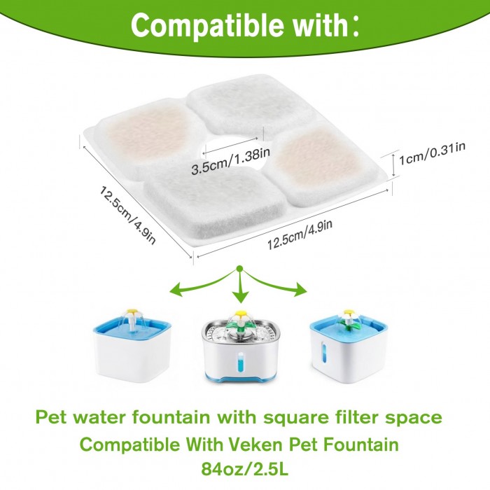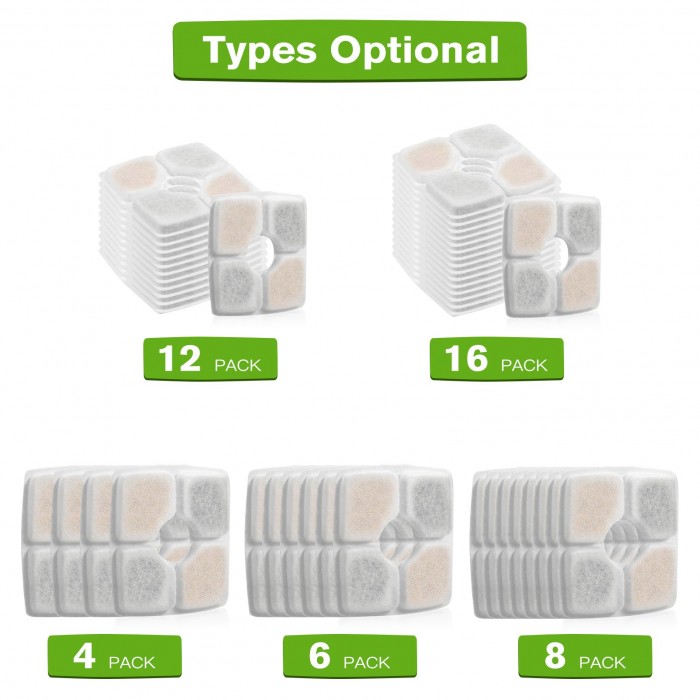 How to Use: Rinse the filter with water thoroughly before using it, easy to mount it on the pet water fountain. In order to ensure the water clean, the filter should be replaced in time, please replace them every 2-4 weeks.