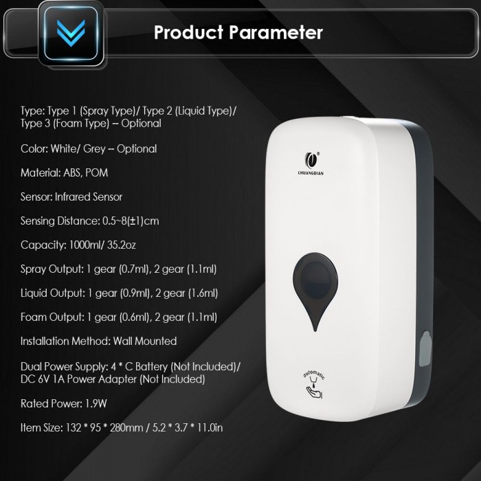 Auto infrared soap dispenser of spray/ liquid/foam type provides safety and convenience. Keep hands clean and sanitary everyday.