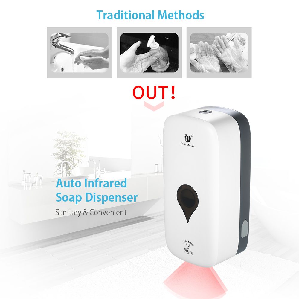 CHUANGDIAN Auto Infrared Soap Dispenser Wall Mounted Liquid Type Touchless 1000ml Automatic Soap Dispensers Hands Cleaning Machine for Home Bathroom Kitchen Hotels Restaurants (White)