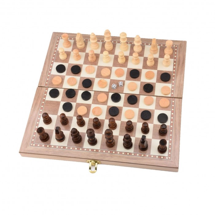 Folding Wooden Three-in-one Suit Chess Board Solid Wood Chess Checkers Suit Gomoku Suit Chess Set