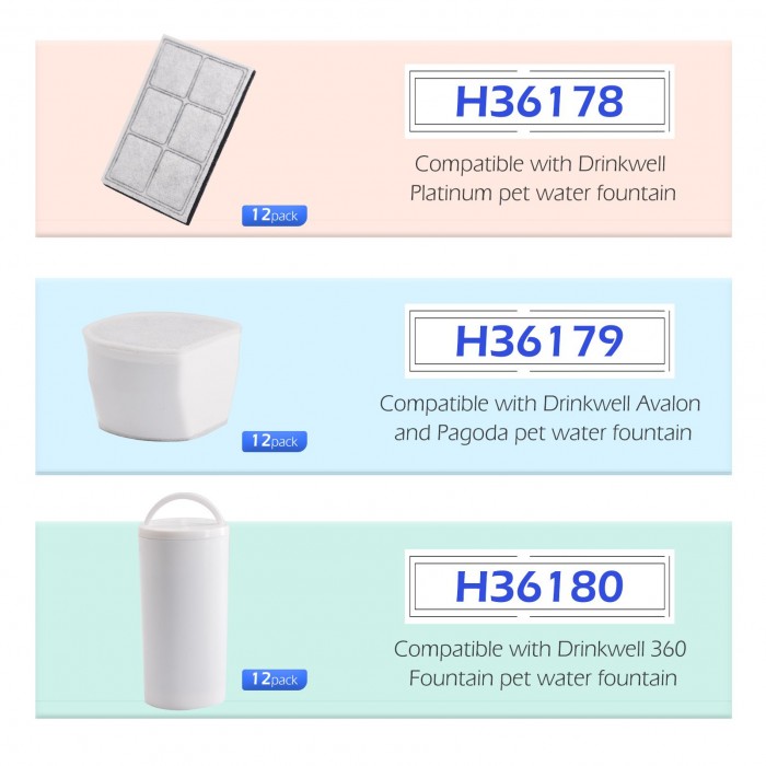Value pack of 12 filters. Compatible with Drinkwell 360 Fountain cat water fountain.