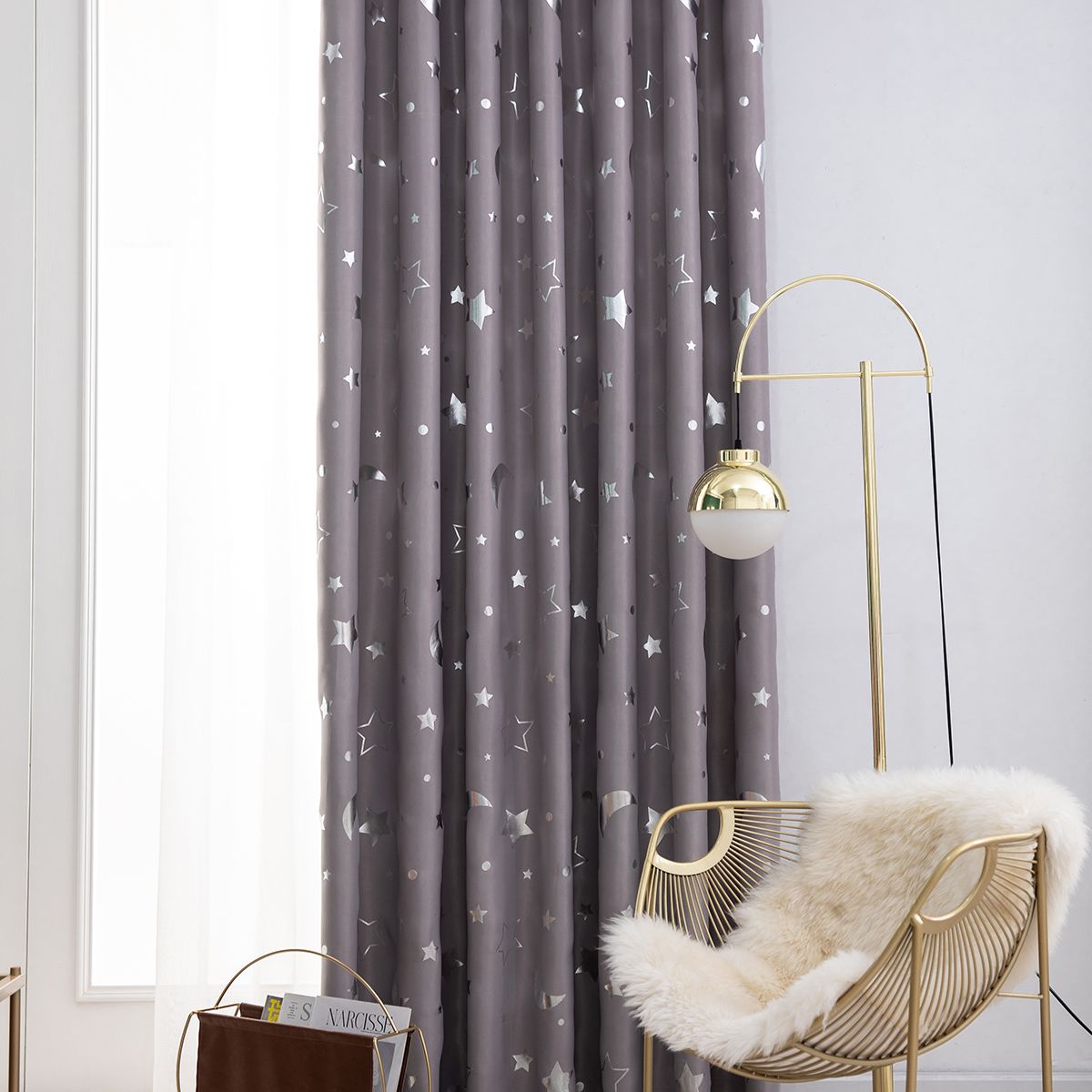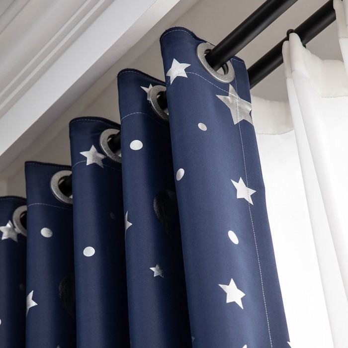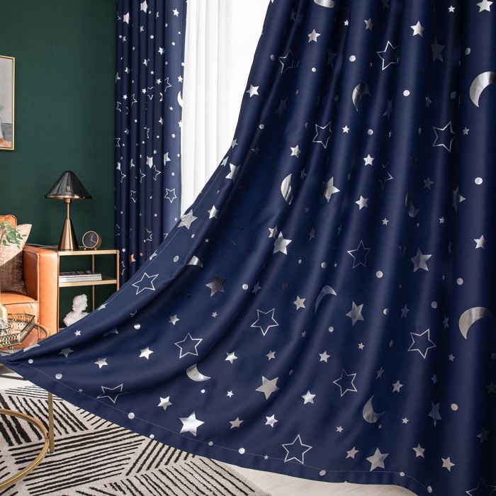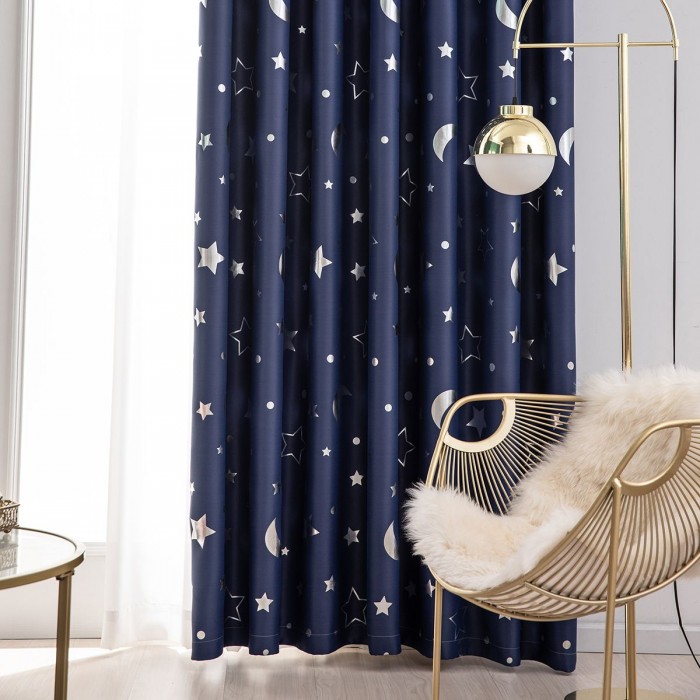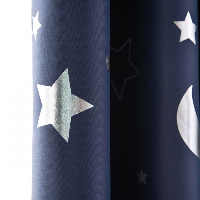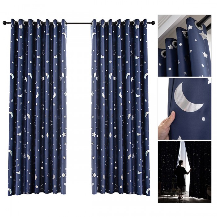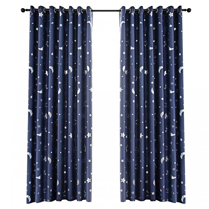 2. These heavy roped-top insulated curtains will transform your room with their light-blocking properties and unique ultra-soft material, made up of soft gloss and metallic moons and stars.