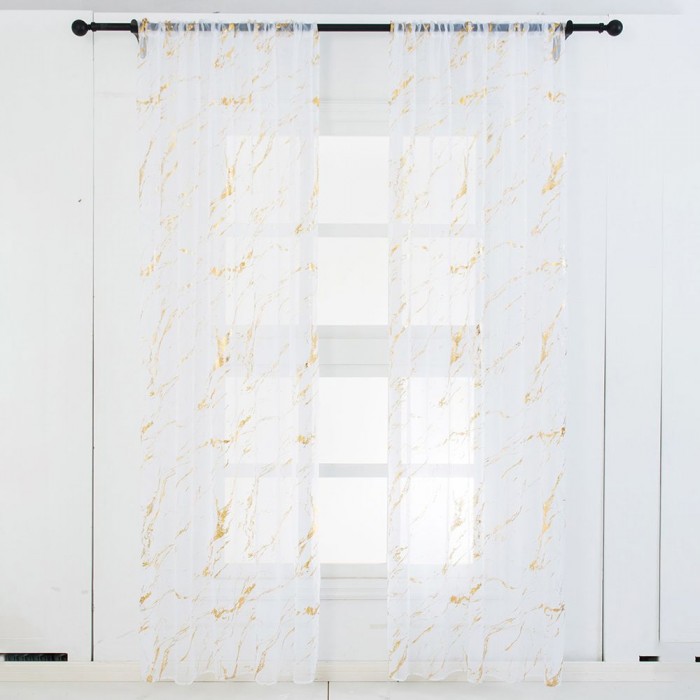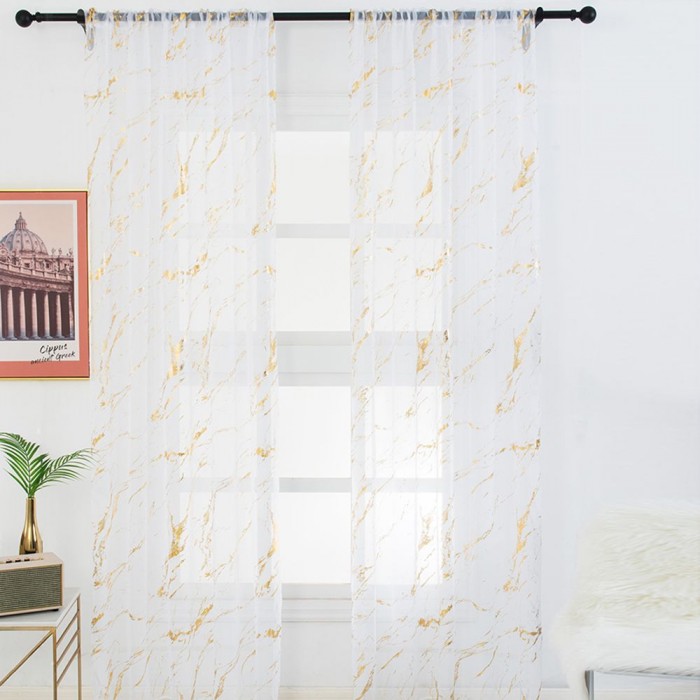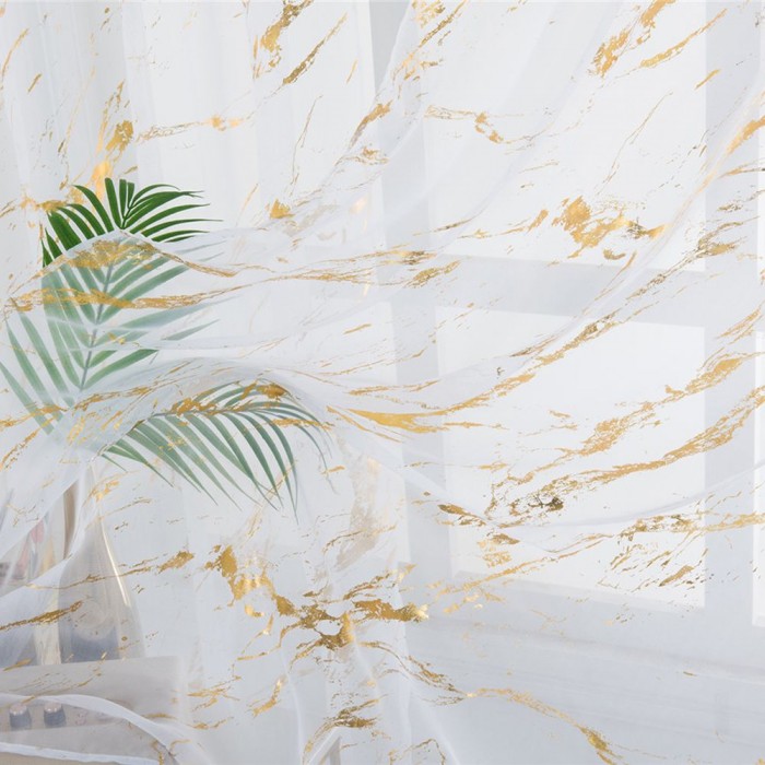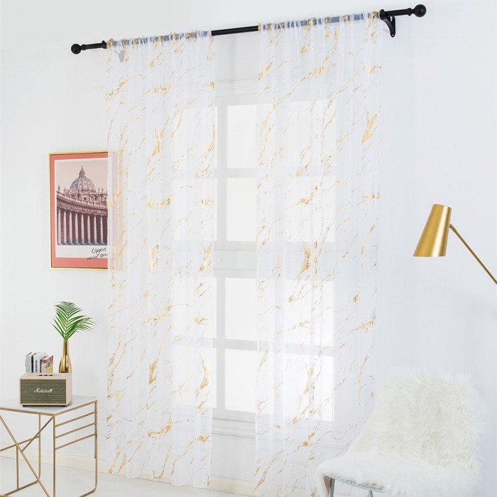 Marble print curtain is made of Polyester material that is flat, smooth, soft, crease-free, and it has well thread trimmed. This sheer curtain is perfectly suitable for home, shared bedroom, studio, etc.