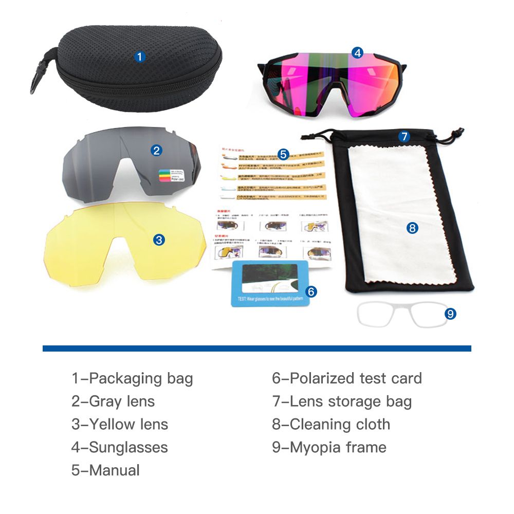 Comes with a myopia frame which can be stuck in the groove of the sunglasses.