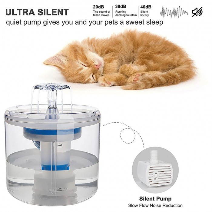 Quiet & Low Power Work: Equipped with a low-power pump, ultra-quiet, and with low power consumption, never disturb you or your pet sleeping. The water pump can regulate the water flow. The pump normally lasts between 2.5-4 years.
