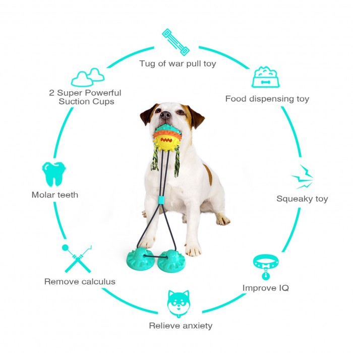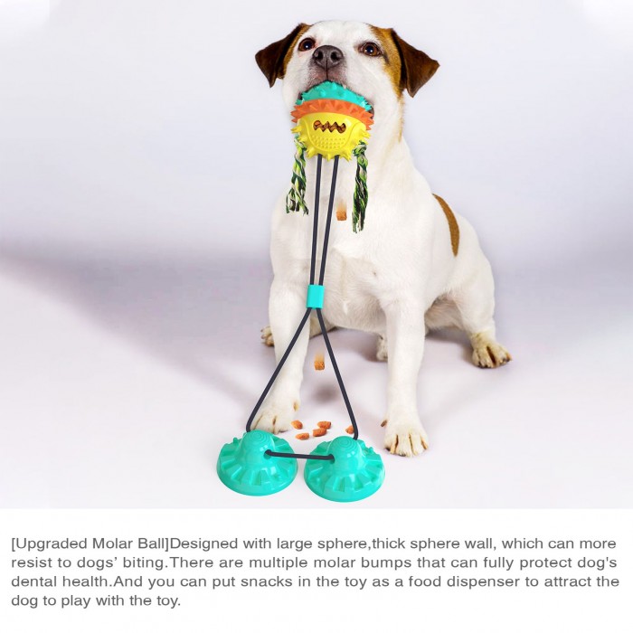 Suction cup dog toy built-in small whistle,squeaking sounding design is added to the bottom of the molar ball, which will make a special sound to improve the dog's mind attention and interests