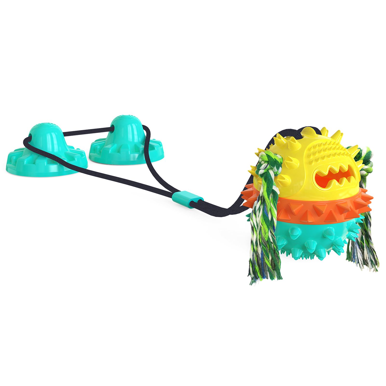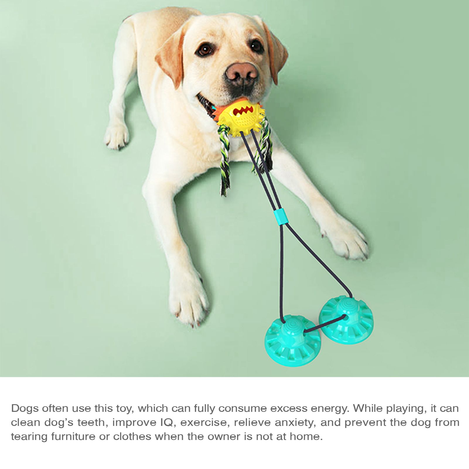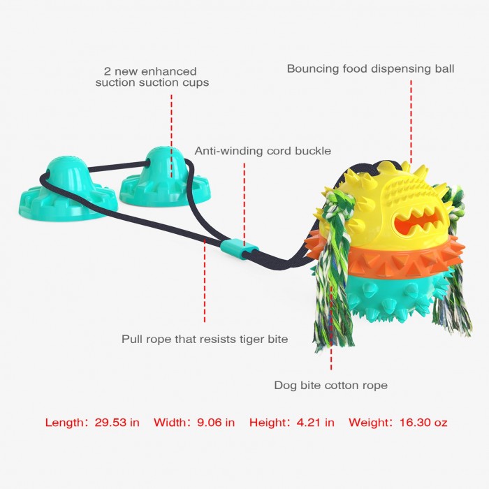 Dog toys for aggressive chewers large breed come with dual sution cups provide stronger suction then others, the suction cup can withstand a pulling force of up to 200lbs, even a grumpy dog ​​can chew, bite, and tug of war