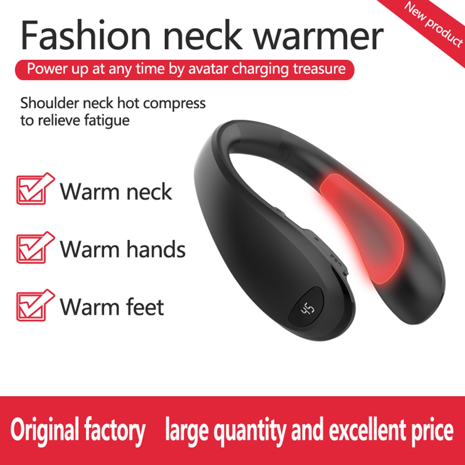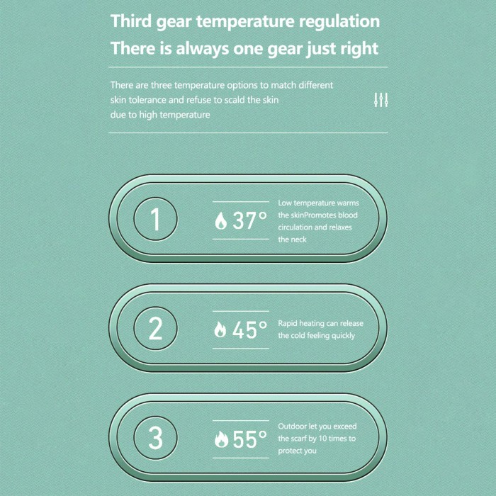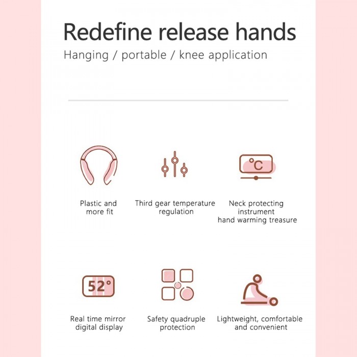 The rechargeable 8000mAh power bank with neck heated,  as comfortable as a hot towel. It can promote blood circulation, relieve your neck pain, active tissue cells, and relieve shoulder tiredness. Support real-time LED display temperature, and lightweight design is more comfortable to wear than other bulky products.
