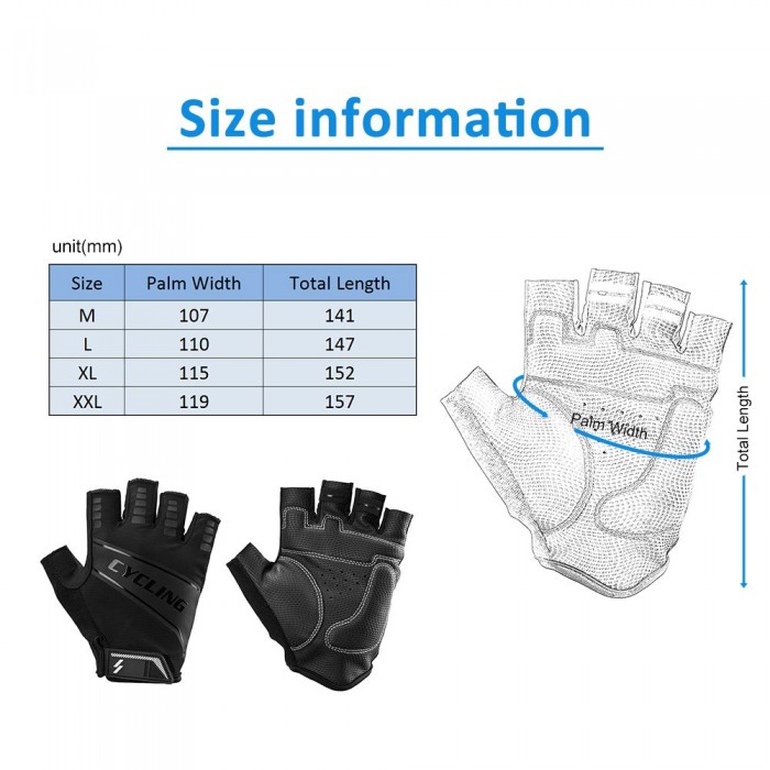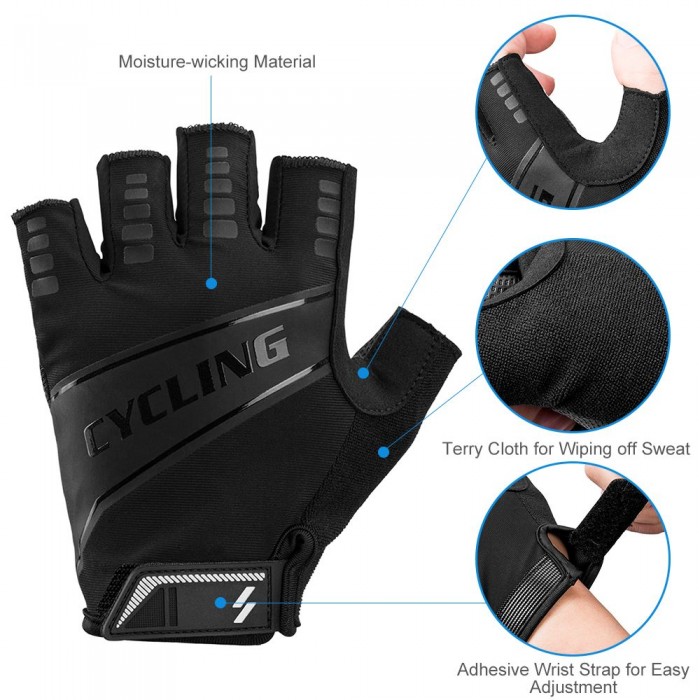 Lightweight, moisture-wicking half finger gloves ensure cyclists a comfortable riding experience.