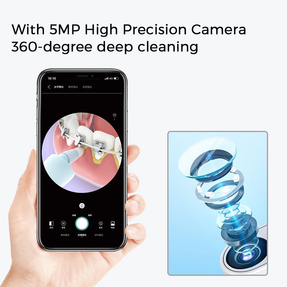 - Smart visual oral irrigator, watch while cleaning.