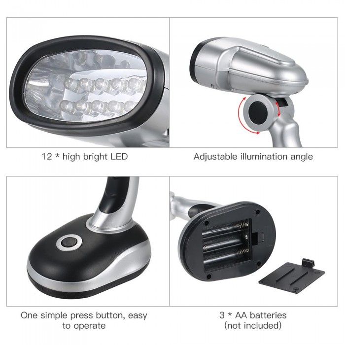 12 pcs high bright LED, flicker-free and anti-glare light without strobes and radiation, it can keep your eyes away from exhaustion.