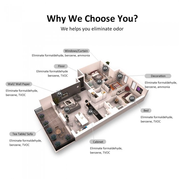 It can be used for odor elimination, effectively to provides you f-resh air and c-lean living environment.