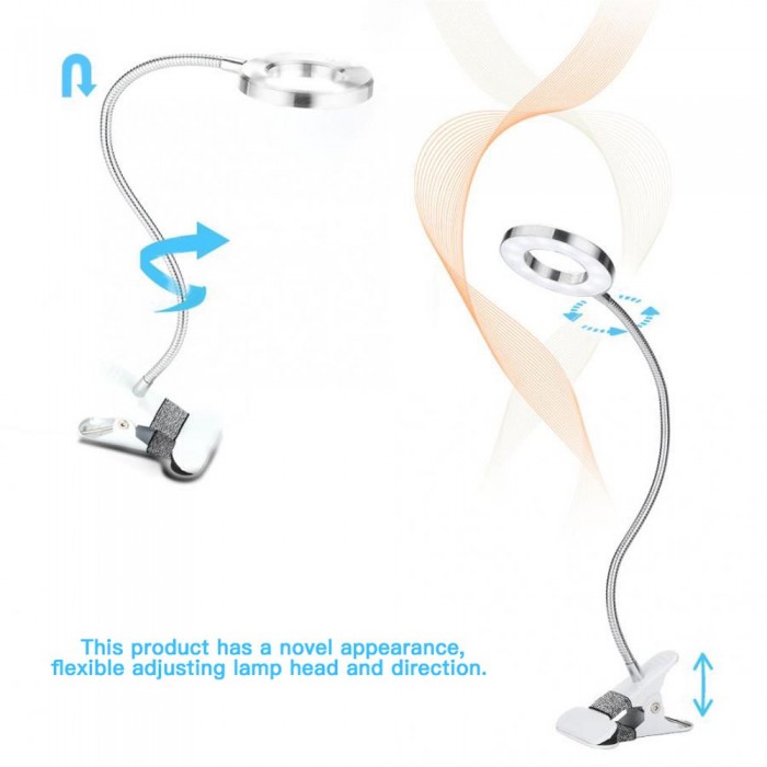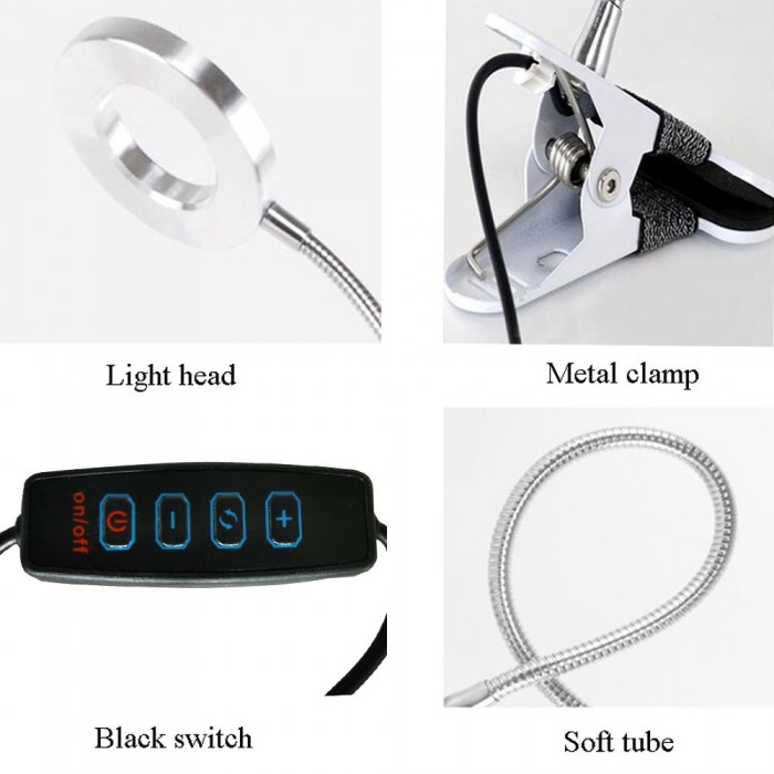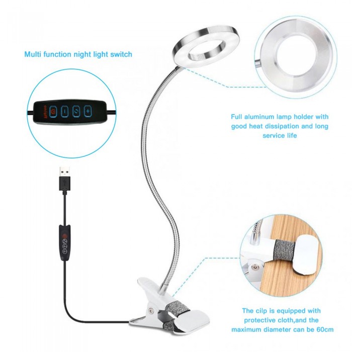 This eye protection table lamp is USB powered, eye-protective, and fully-flexible. With the clip-on design, you can clamp it right where you need. The comfortable white light and yellow light are adjusted. It can be used at home, in the office, in the beauty salon, etc.