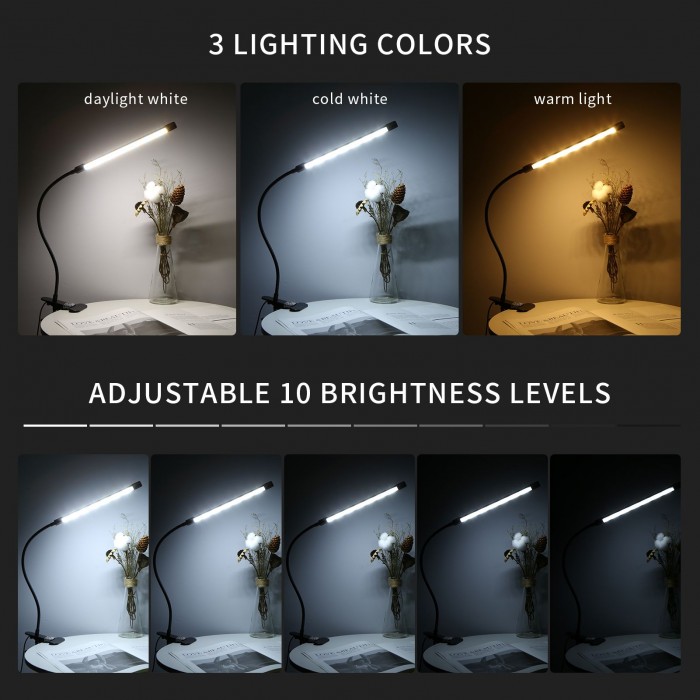 3 lighting colors-warm light/daylight white/cold white, each with 10 brightness levels for your different needs.