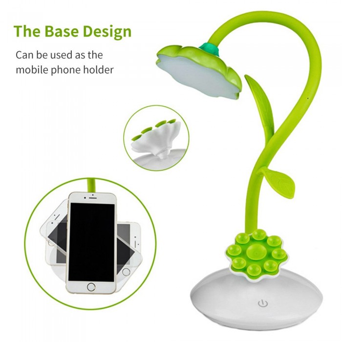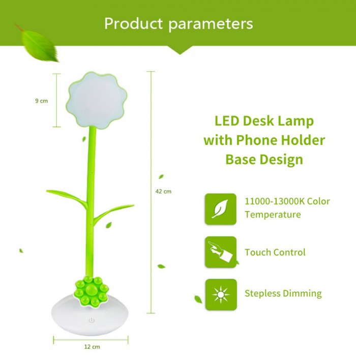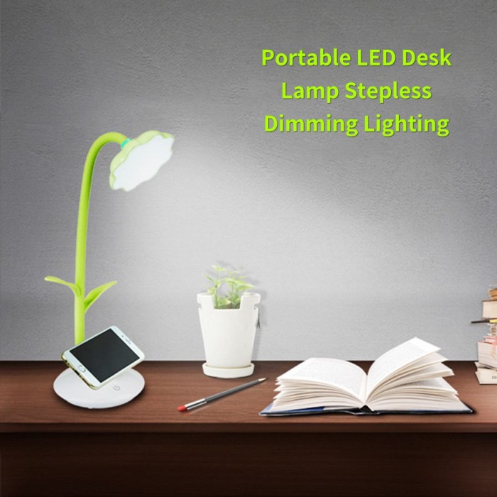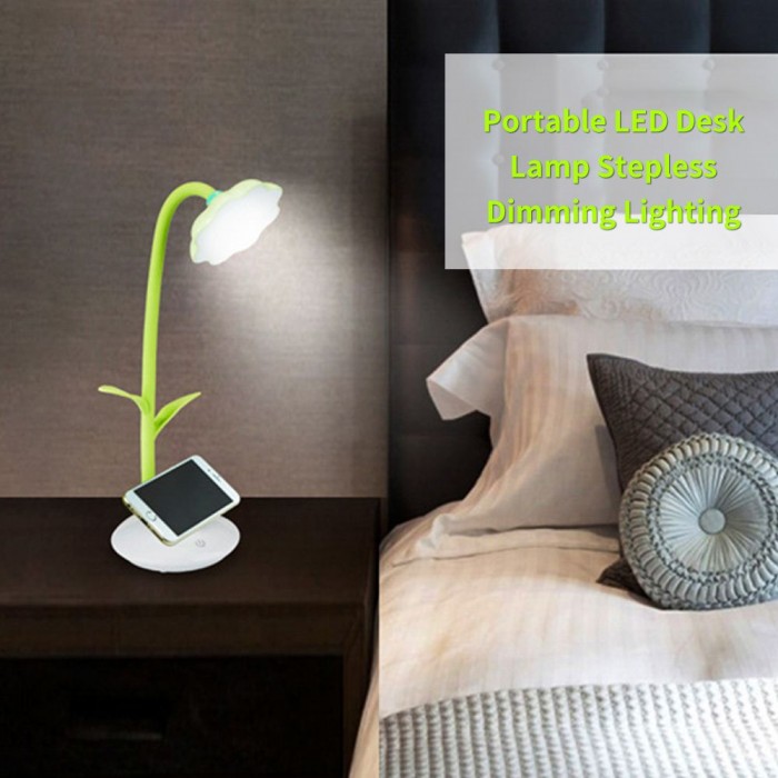 LEDs Desk Lamp with Phone Holder Base USB Rechargeable Night Light Touch Control Stepless Dimming Light 360° Flexible Hose for Bedroom Reading Working