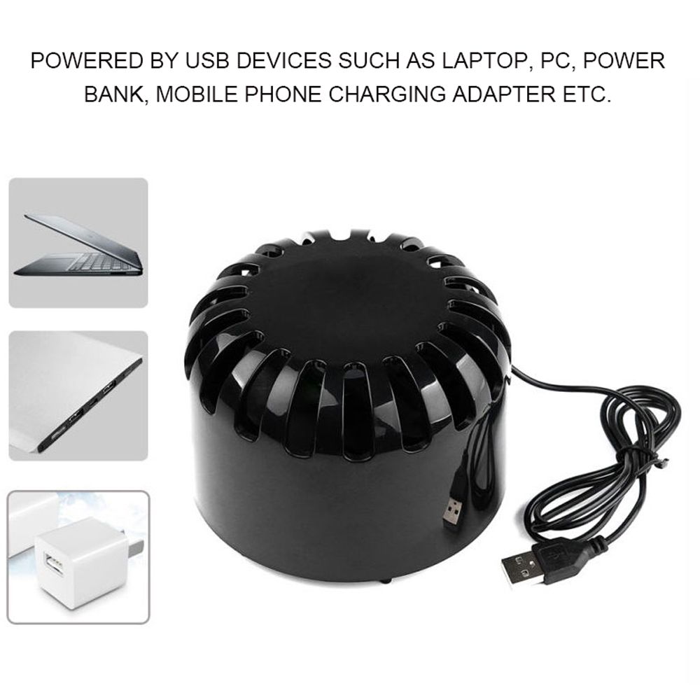 Powered by USB devices such as laptop, PC, charge pal, mobile phone charging adapter etc.