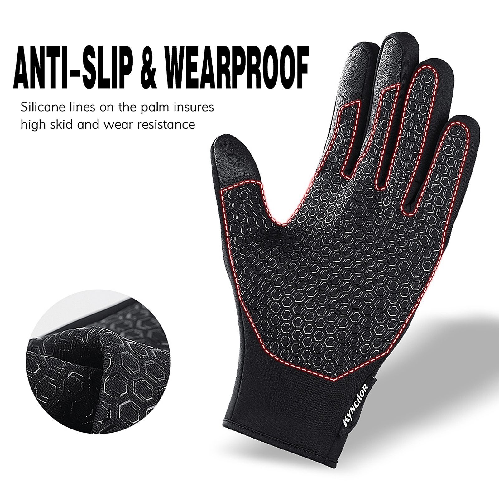 Anti-slip silicone details on the palm, easy to grab things.