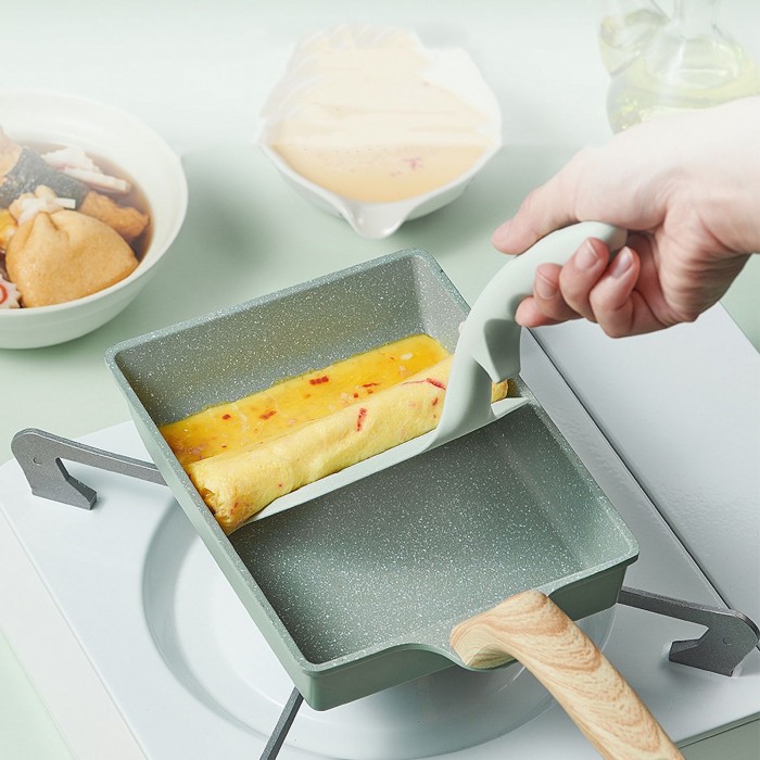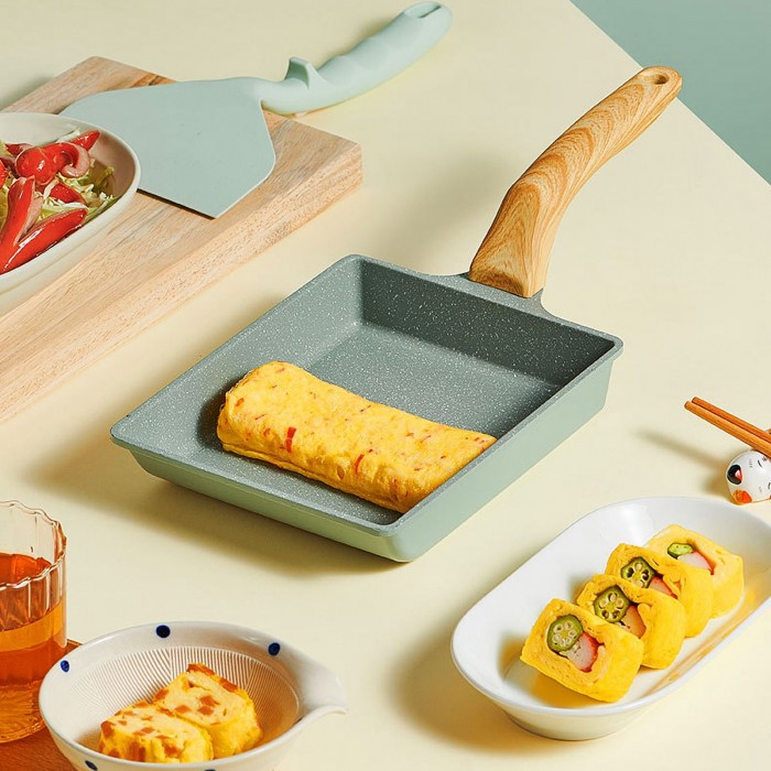 The Japanese egg pan is light and handy, making it very easy to use. The non-stick coating makes food not stick to the pan and easy to clean. Please clean the pan with soft sponges. A lovely egg pan makes cooking more fun.