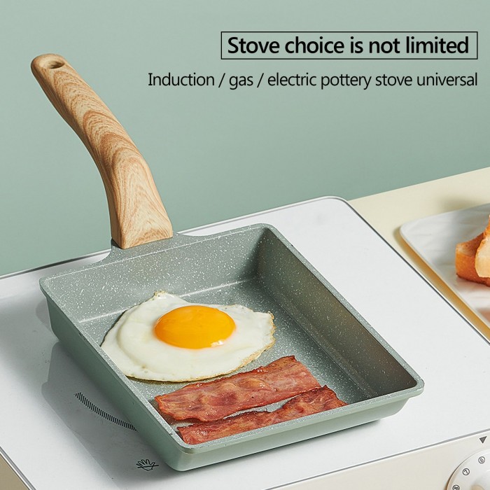 [Non-stick]The non-stick egg pan is featured as easy-release and uniform, fast heat conduction. And the coating will not peel or flake off.