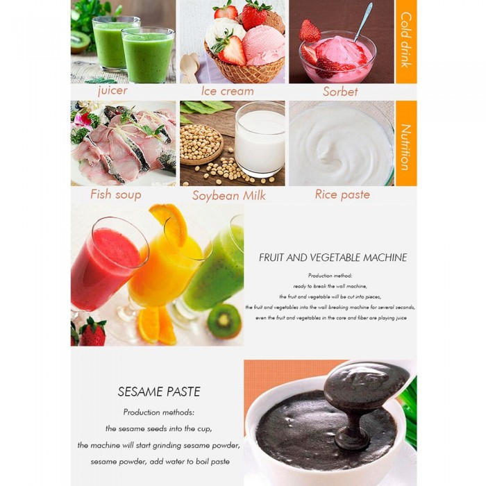 3. This juicer is versatile and can grind soybean milk, press vegetables and fruit juice, crush ice and other kinds of food as needed.