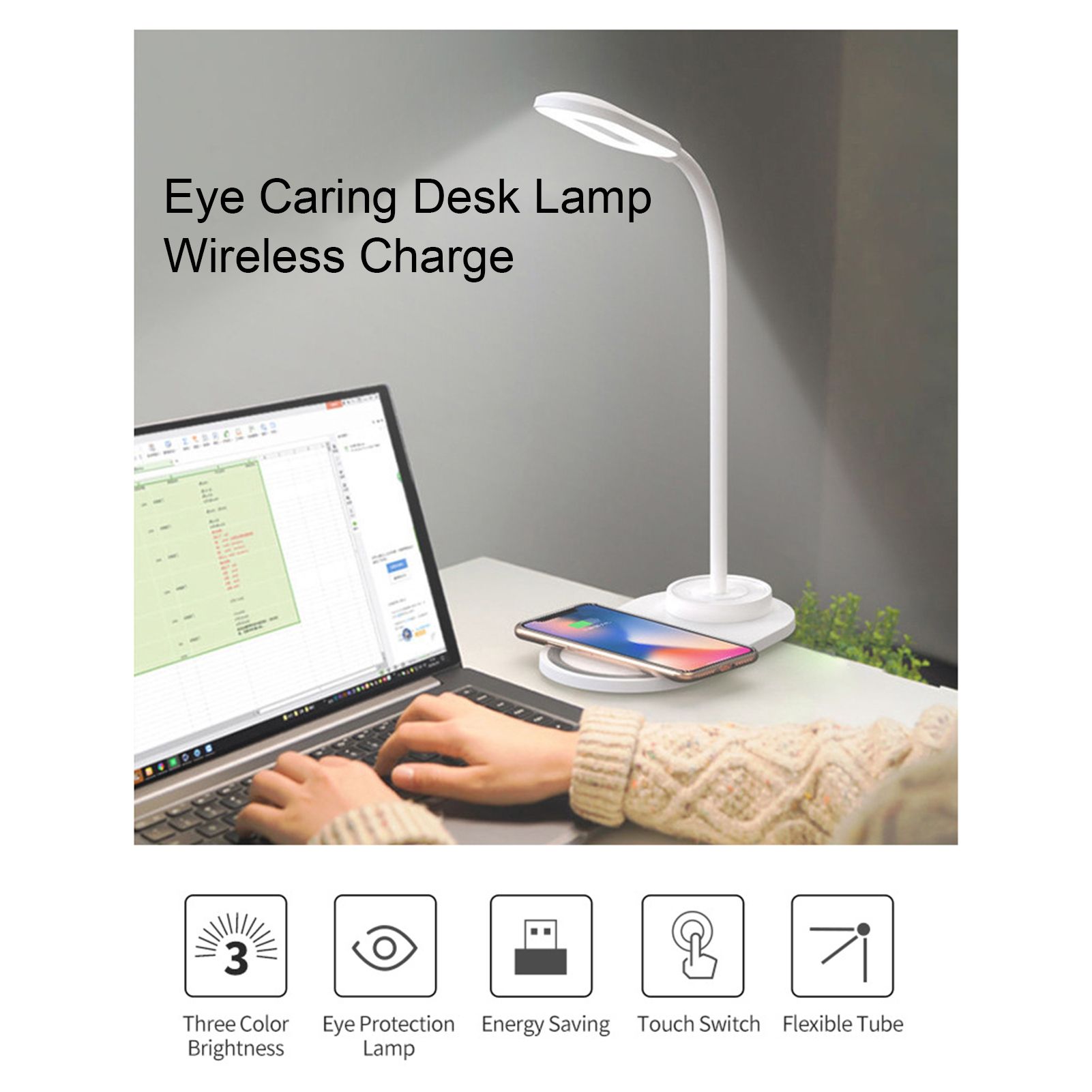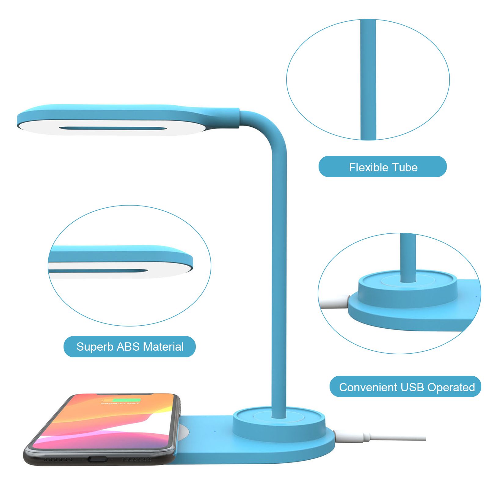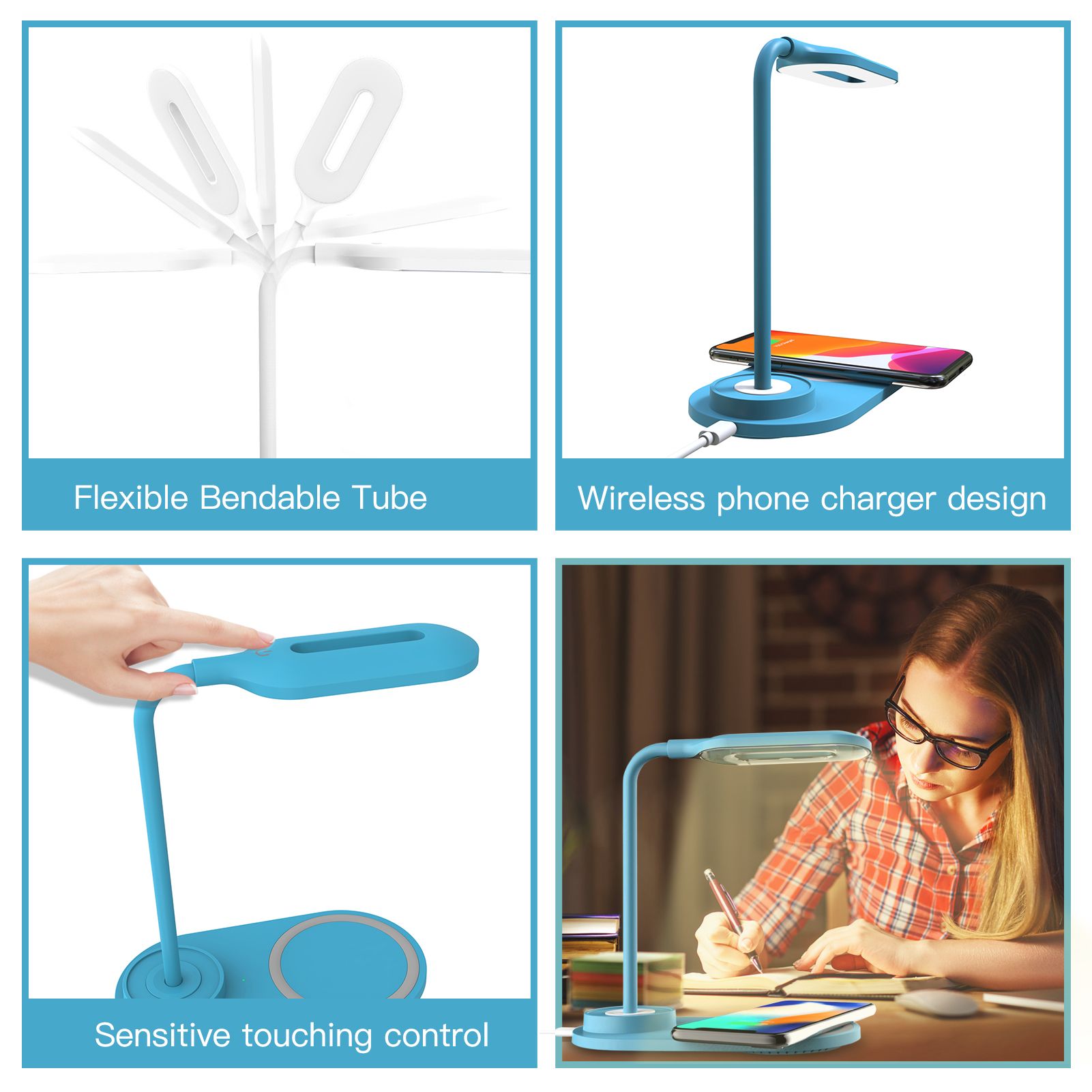 LEDs Desk Light Table Lamp W ireless C harger Sensitive Touching Control/ 3 Levels Adjustable Brightness/ 3 Levels Dimmable/ USB Operated/ Flexible Bendable Tube Portable for Office School Students