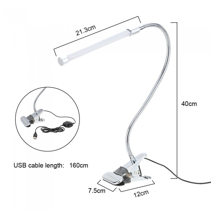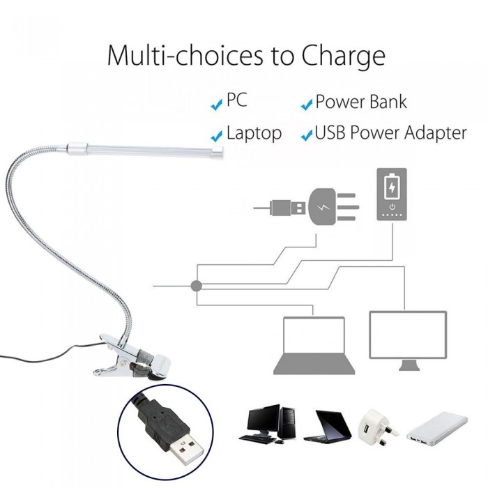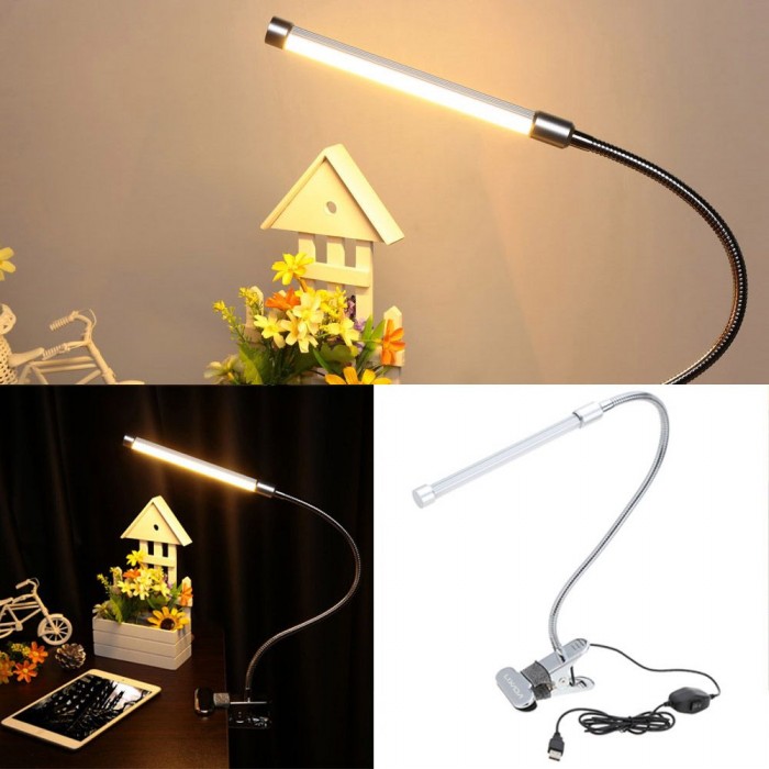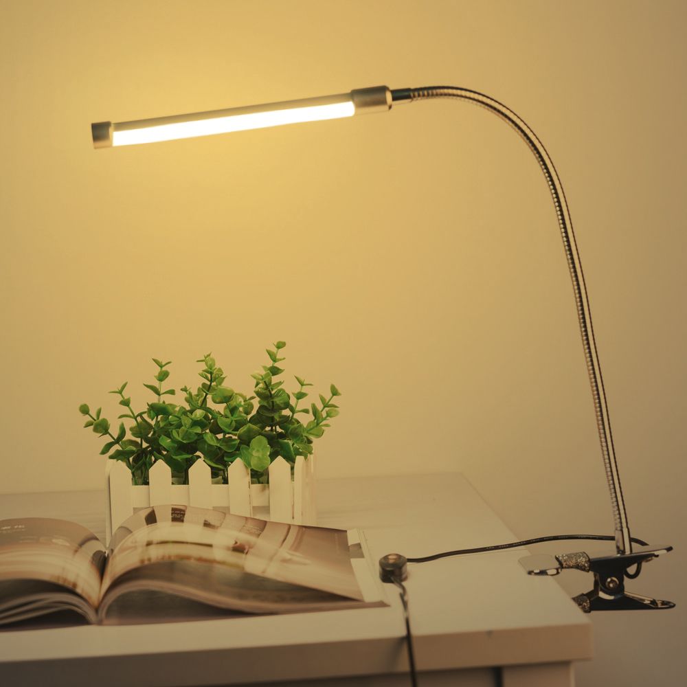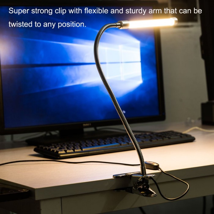 Easy to use and high feasibility: LED clamp light can be clamped on the edge of desk, bookshelf, bedside and so on. The flexible metal tubing can be rotated, so the light can be from arbitrary angel with any intensity control.
