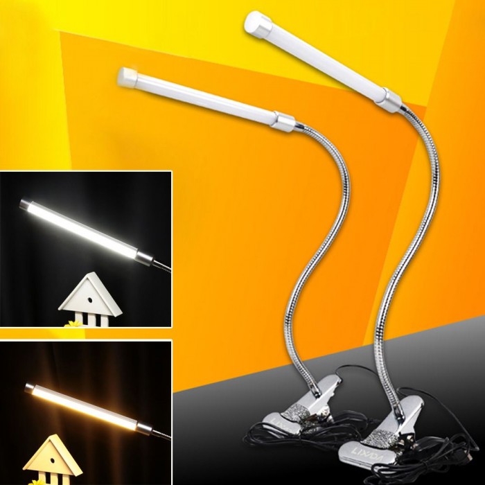 Lixada USB Clamp LED Desk Table Lamp Adjustable Clip-on Flexible Gooesneck Light 6W 18LED Eye Protection with Switch for Reading Study Bed Laptop