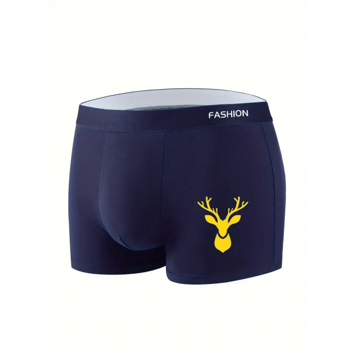4pcs Reindeer Head Print Men's Anti-bacterial Breathable Comfy High Stretch Boxer Briefs Shorts, Sports Shorts, Men's Underwear