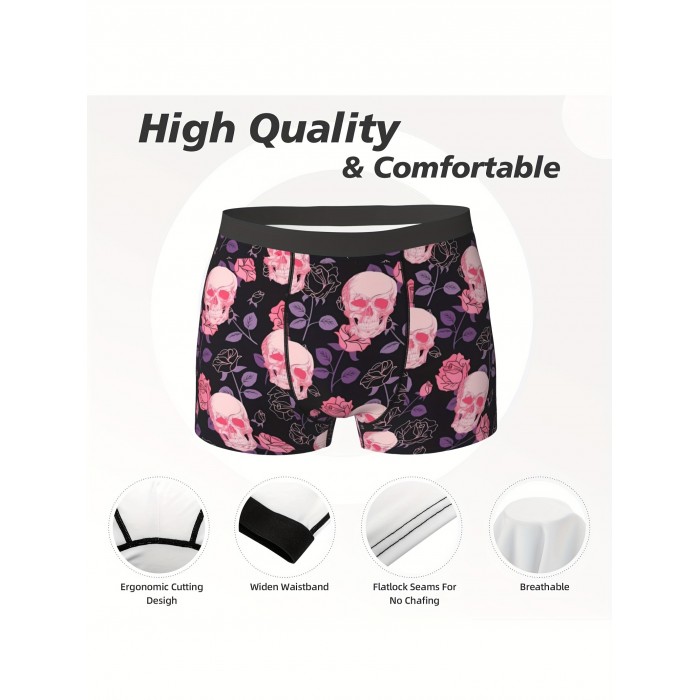 Men's Halloween Skull Horror Pattern Fashion Novelty Boxer Briefs Shorts - Sexy, Breathable, Comfy, Stretchy Underwear