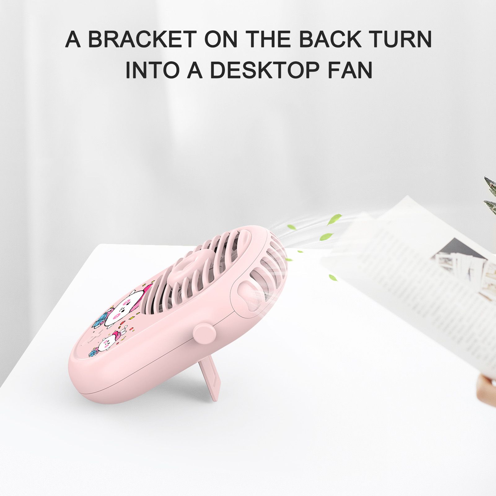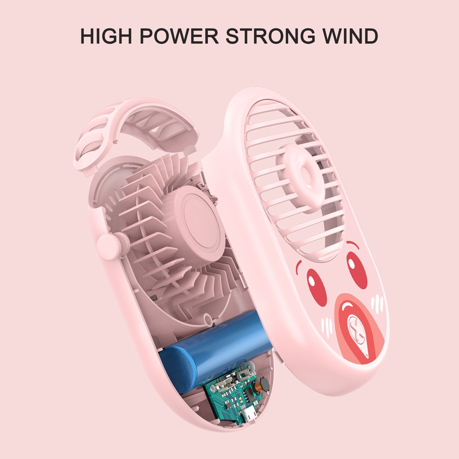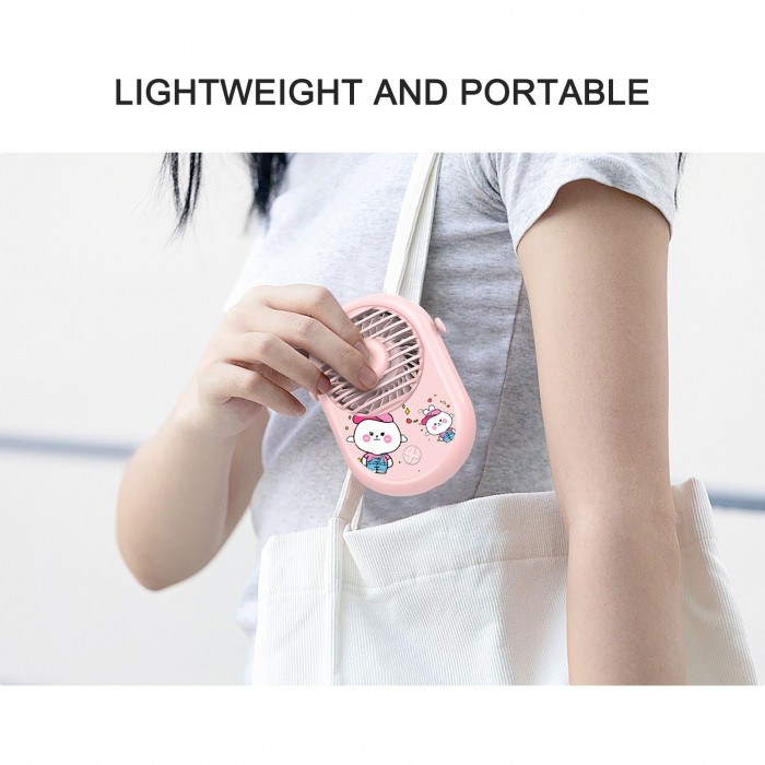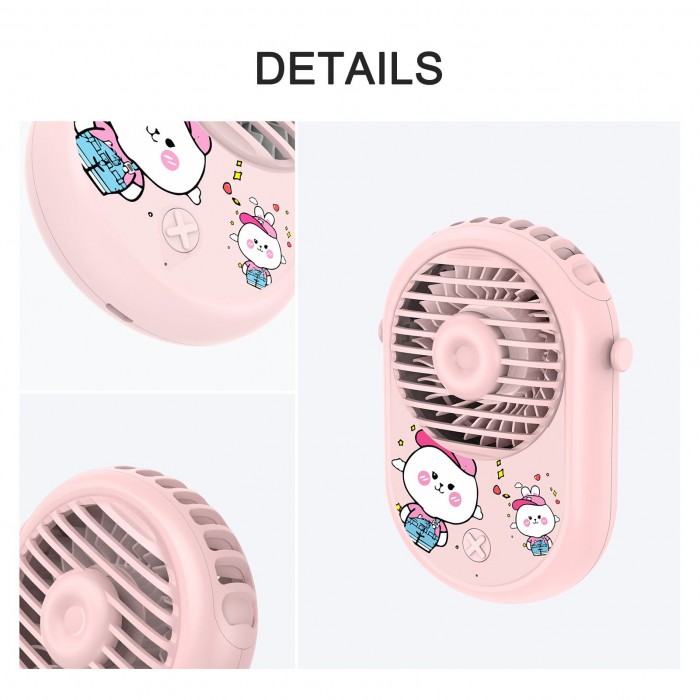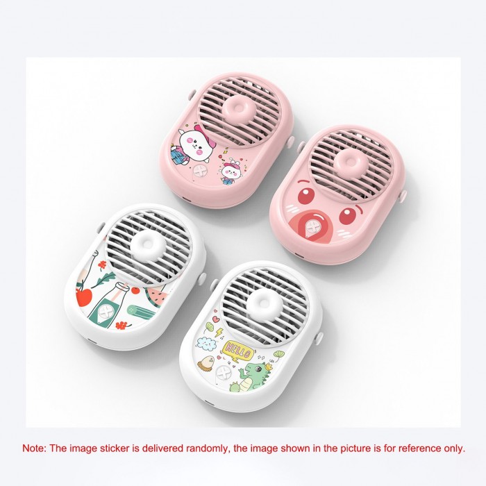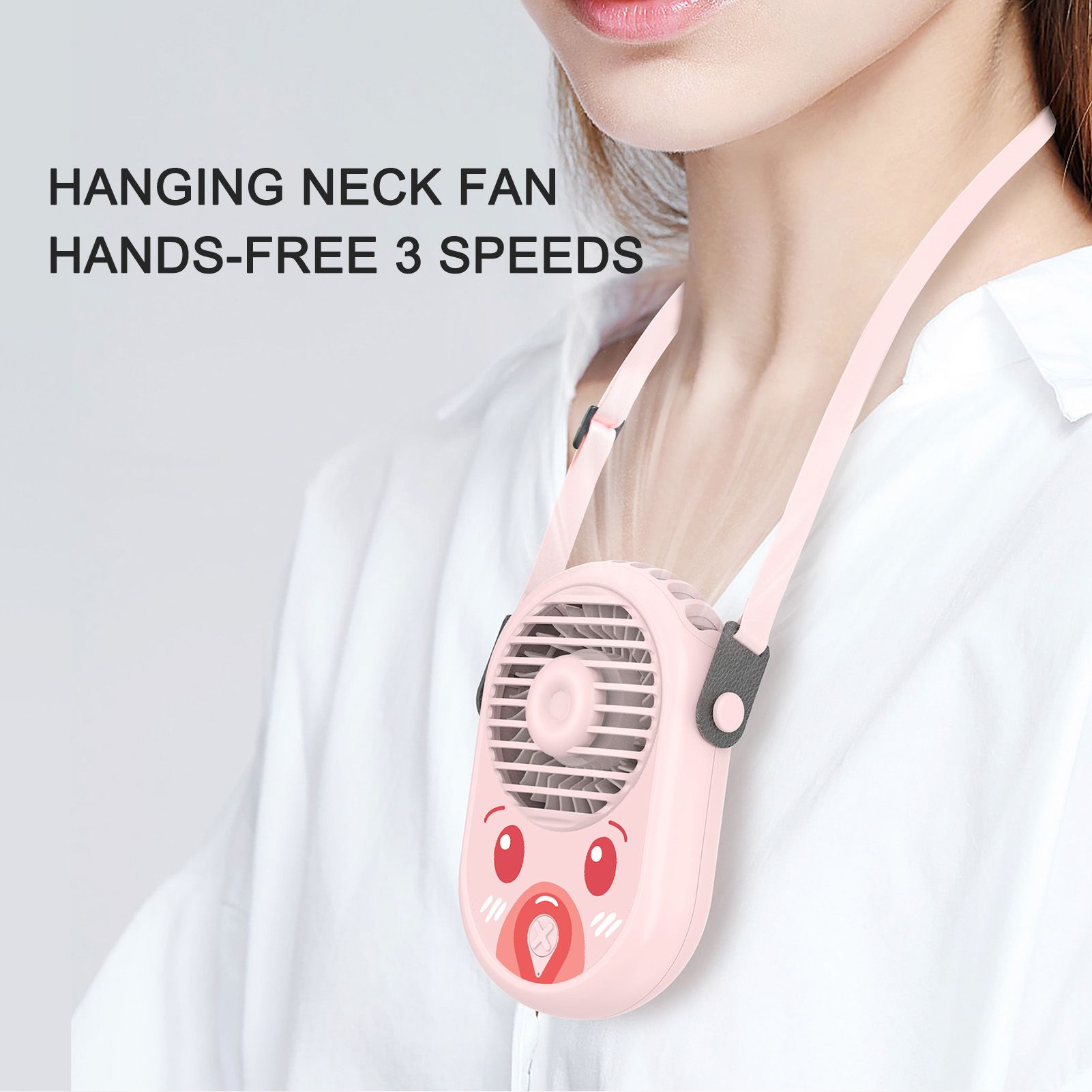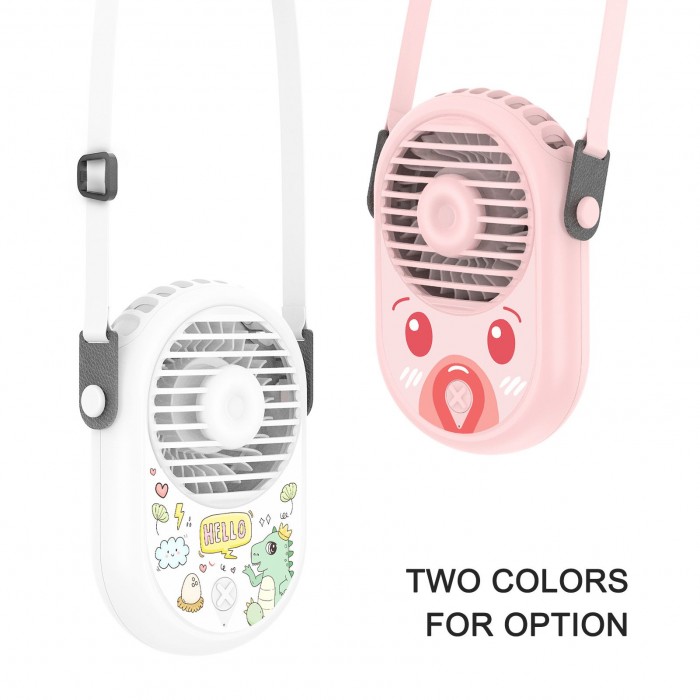 Unique cute mini hanging neck fan, with two cute image stickers, very stylish, creating cool wind for you neck and face.