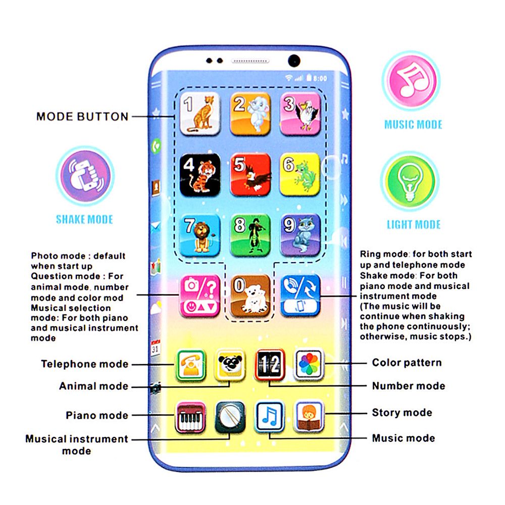 Children's early educational toys multi-function charging sound music learning mobile phone. Explore 14 modes/38 different phone activities as you pretend and play with your very own smart phone.